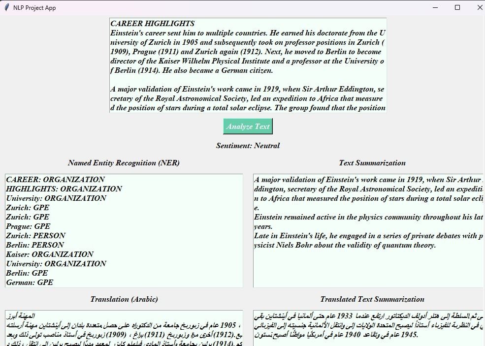 -NLP System لتحليل النصوص، الترجمة، وتلخيص المحتوى.