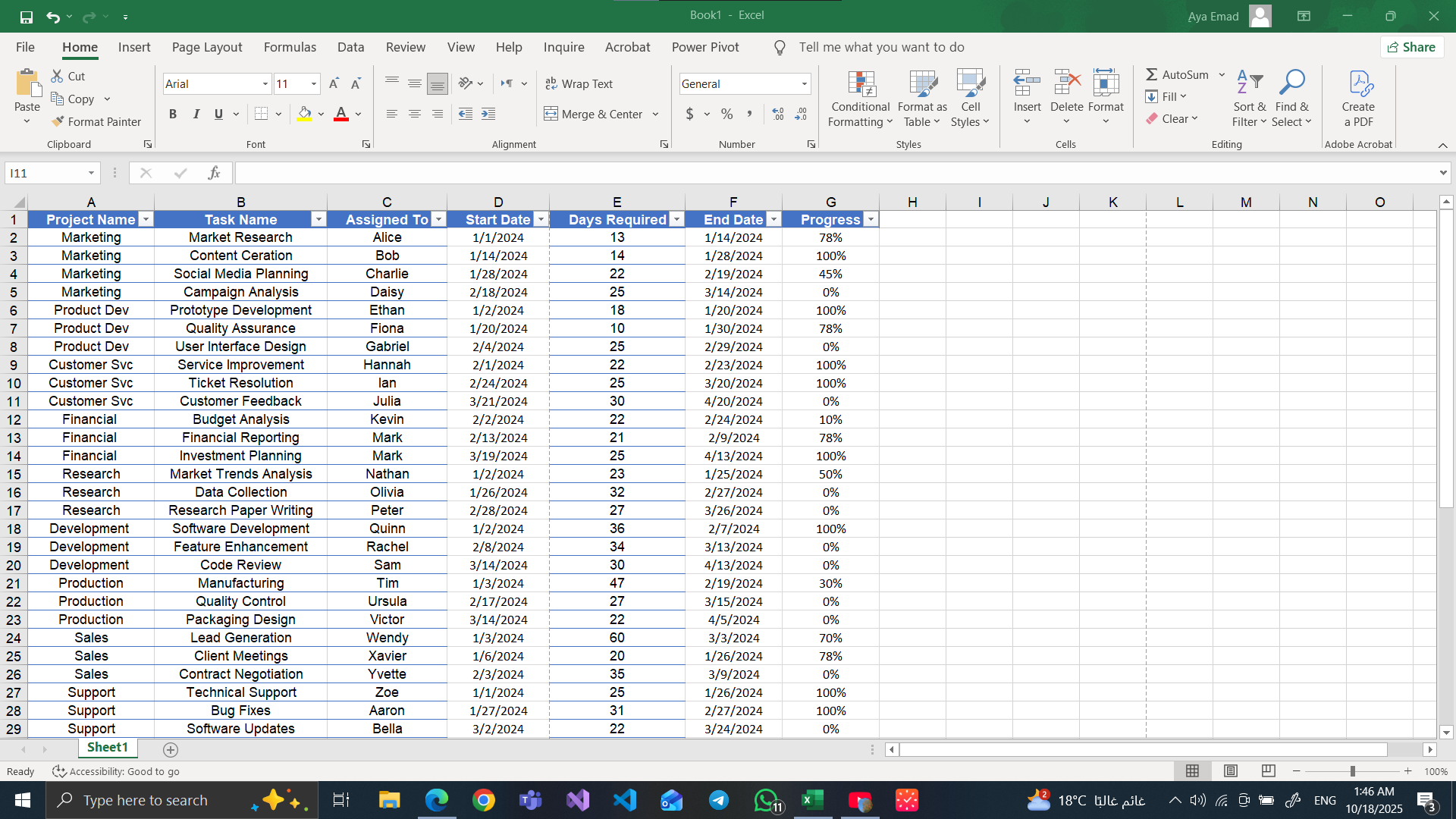 أو شغل جداول بشكل مرتب