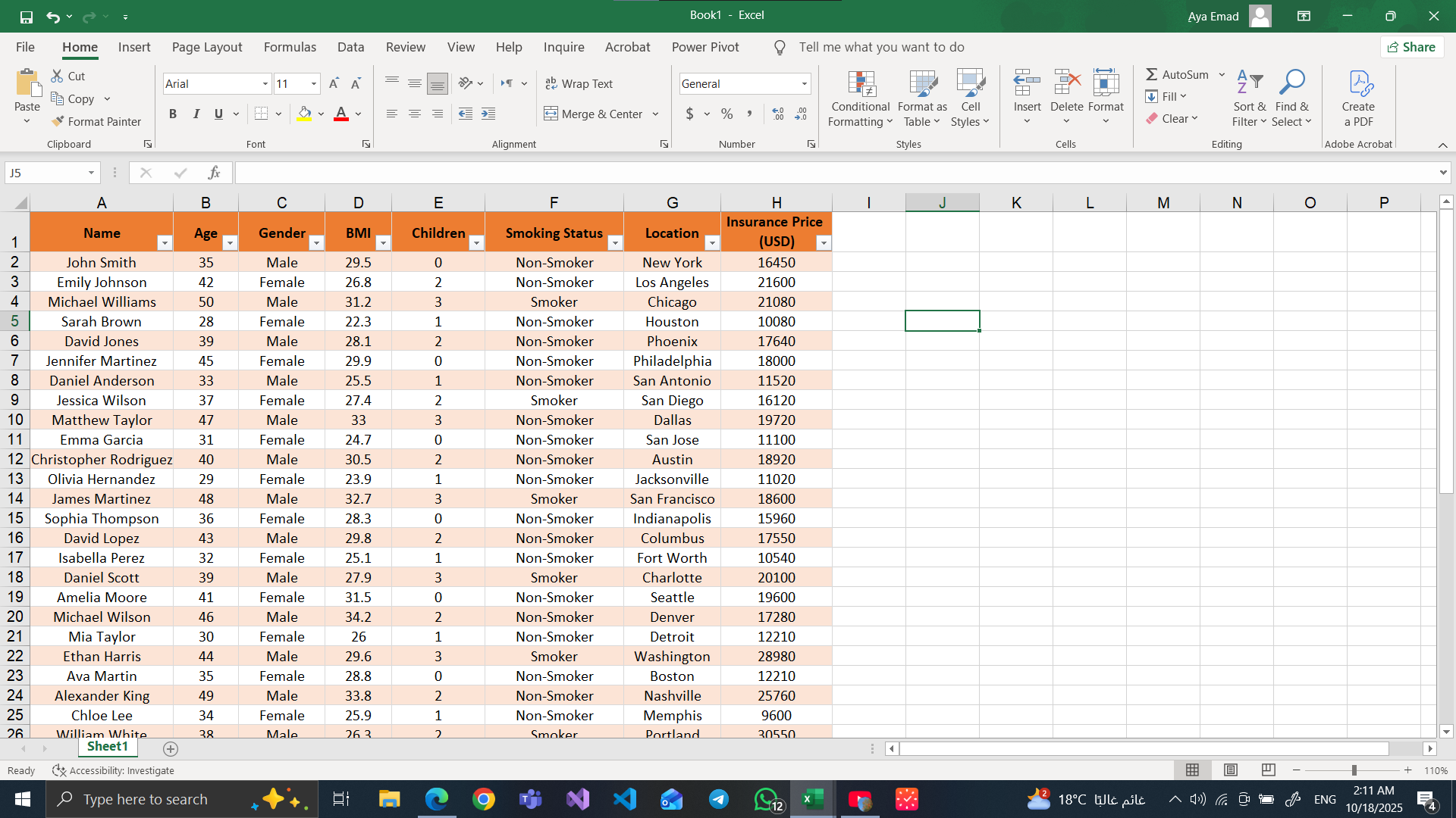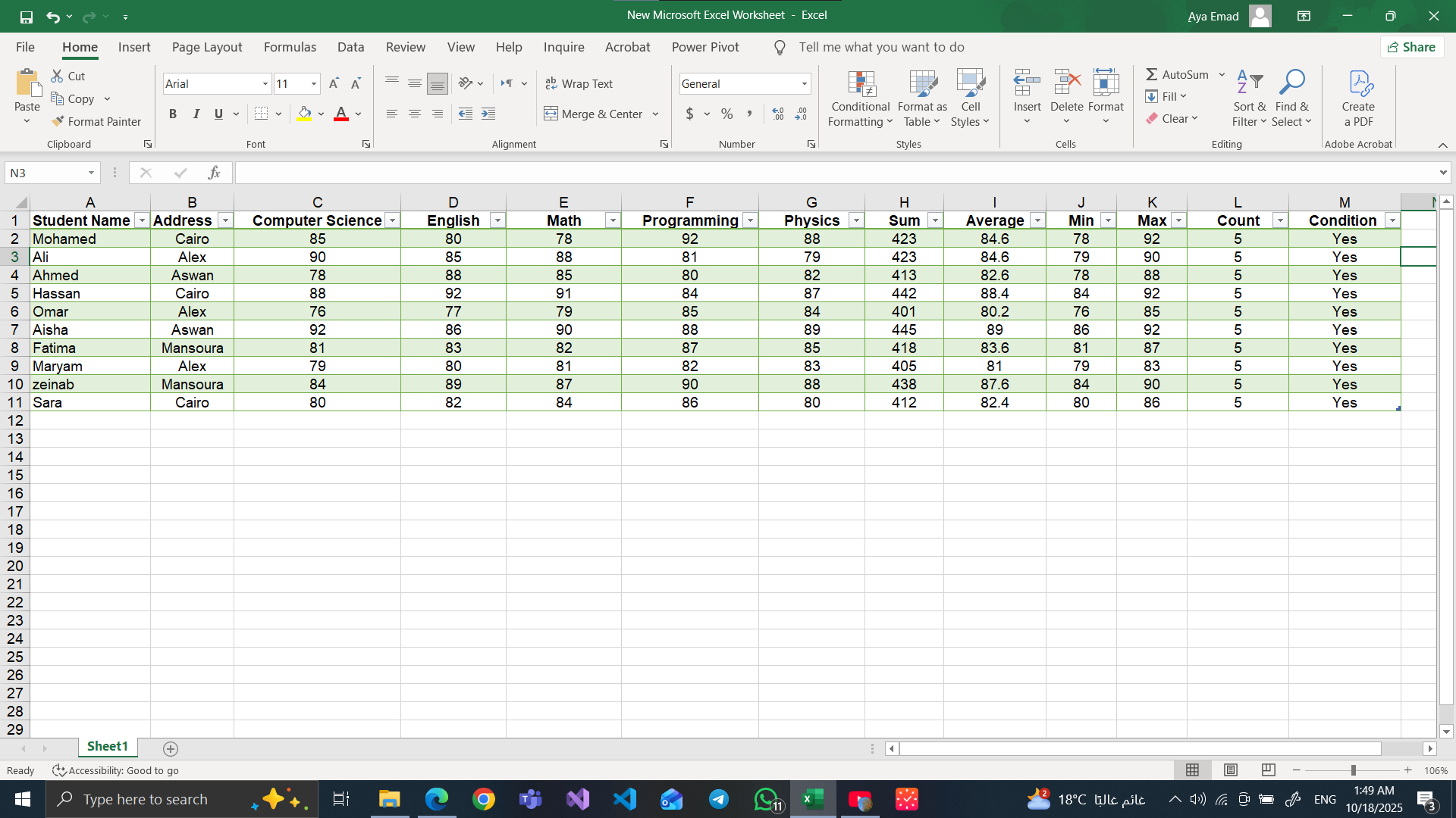 السلام عليكم و رحمة الله و بركاته أنا آية، طالبة في كلية حاسبات ومعلومات، وبشتغل مدخلة بيانات. بحب الشغل اللي فيه تنظيم وترتيب معلومات، وبركز جدًا في التفاصيل عشان الشغل يطلع مظبوط ومن غير أخطاء.