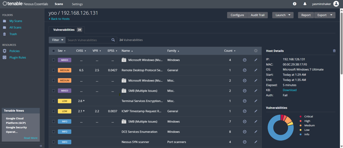 استخدام أداة Nessus لاكتشاف الثغرات الأمنية المحتملة