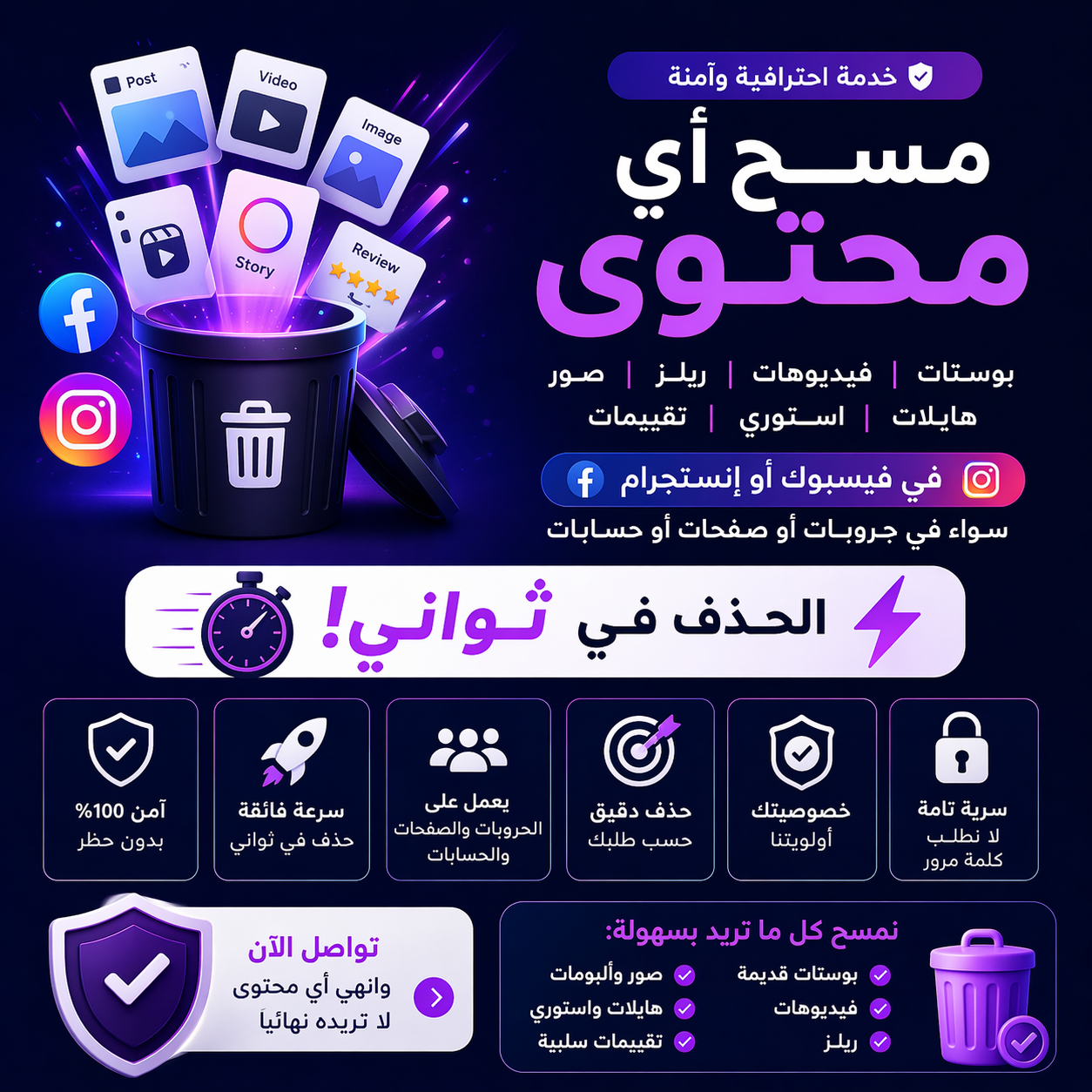 اقدر احذفلك اي منشور او فيديو او ريلز او فيديو يسي لشغلك او سمعتك او شركتك او بيعملك مشاكل او سارق محتواك سواء في فيسبوك او انستجرام في خلال دقيقة واحدة