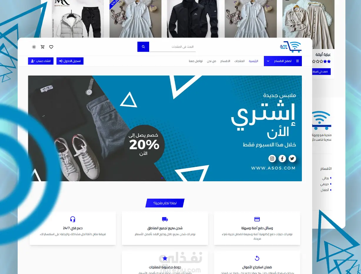 تنوع المنتجات: توضيح أنواع المنتجات (ملابس، رجالي, نسائي , اطفال.).