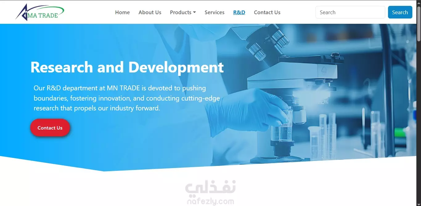 موقع MA-TRADE الإلكتروني للأدوية البيطرية MA-TRADE شركة رائدة في توفير الأدوية والحلول البيطرية عالية الجودة. يعرض موقعنا الإلكتروني منتجاتنا وجهودنا في البحث والتطوير، ويوفر طريقة سهلة للعملاء للتواصل معنا. الميزات الصفحة الرئيسية: تُقدم لمحة عامة عن ما-تريد ورسالتنا. صفحة "نبذة عنا": معلومات مفصلة عن شركتنا وتاريخنا وقيمنا. صفحة المنتجات: قائمة شاملة بمنتجاتنا من الأدوية البيطرية. صفحة البحث والتطوير: تُبرز جهودنا المستمرة في البحث والتطوير في مجال الطب البيطري. صفحة "اتصل بنا": تُتيح للعملاء التواصل معنا، بما في ذلك خريطة جوجل مُدمجة لموقع مكتبنا.