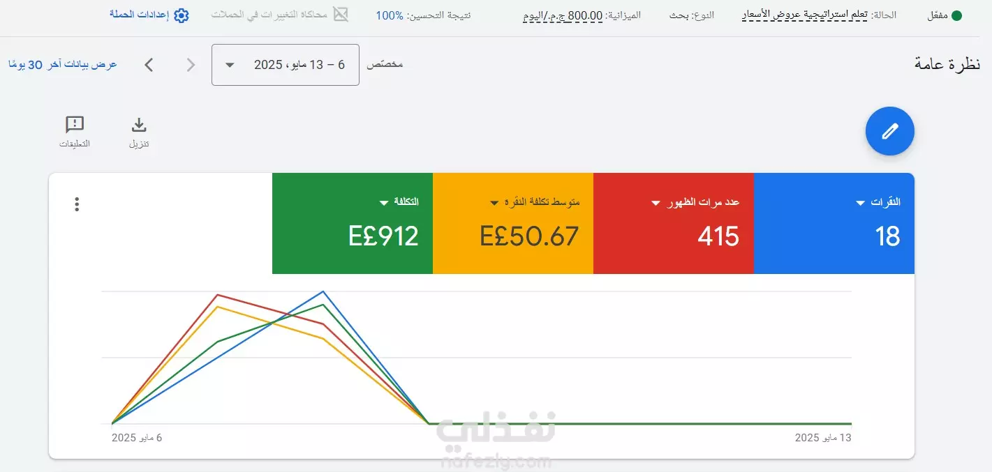 بعد ماقمت بإنشاء الموقع الإلكتروني قمنا بإطلاق أول حملة إعلانية للعميل على جوجل تستهدف الإمارات في مجال المقاولات العامة في هذا المشروع نتائج للحملة كا كل ونتائج لكل أسبوع مفصله والإحالات الناجحة وعدد الظهور والنقرات والتكلفة ومتوسط سعر النقرة.