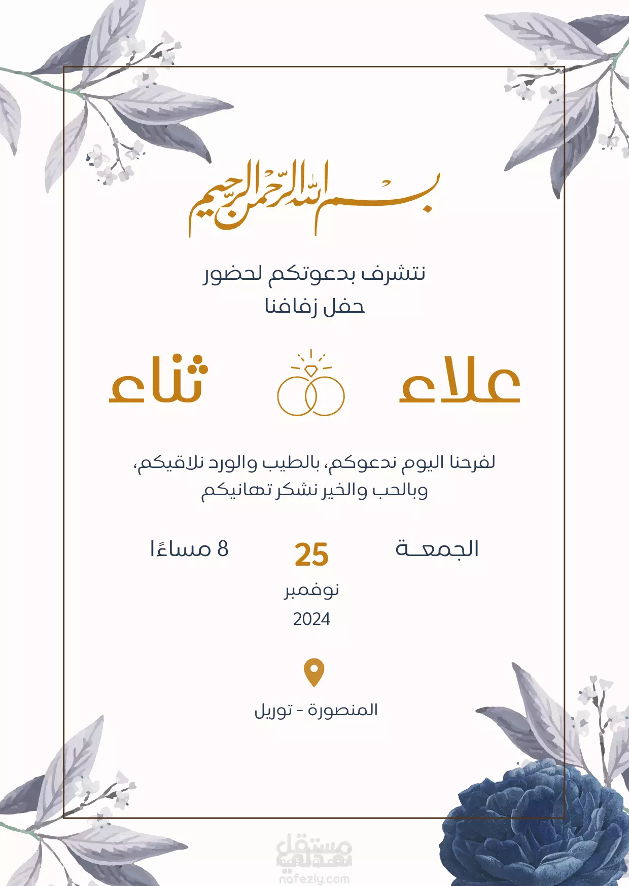 - بطاقة دعوة مقاس A5 بتنسيق JPEG و PDF و PNG