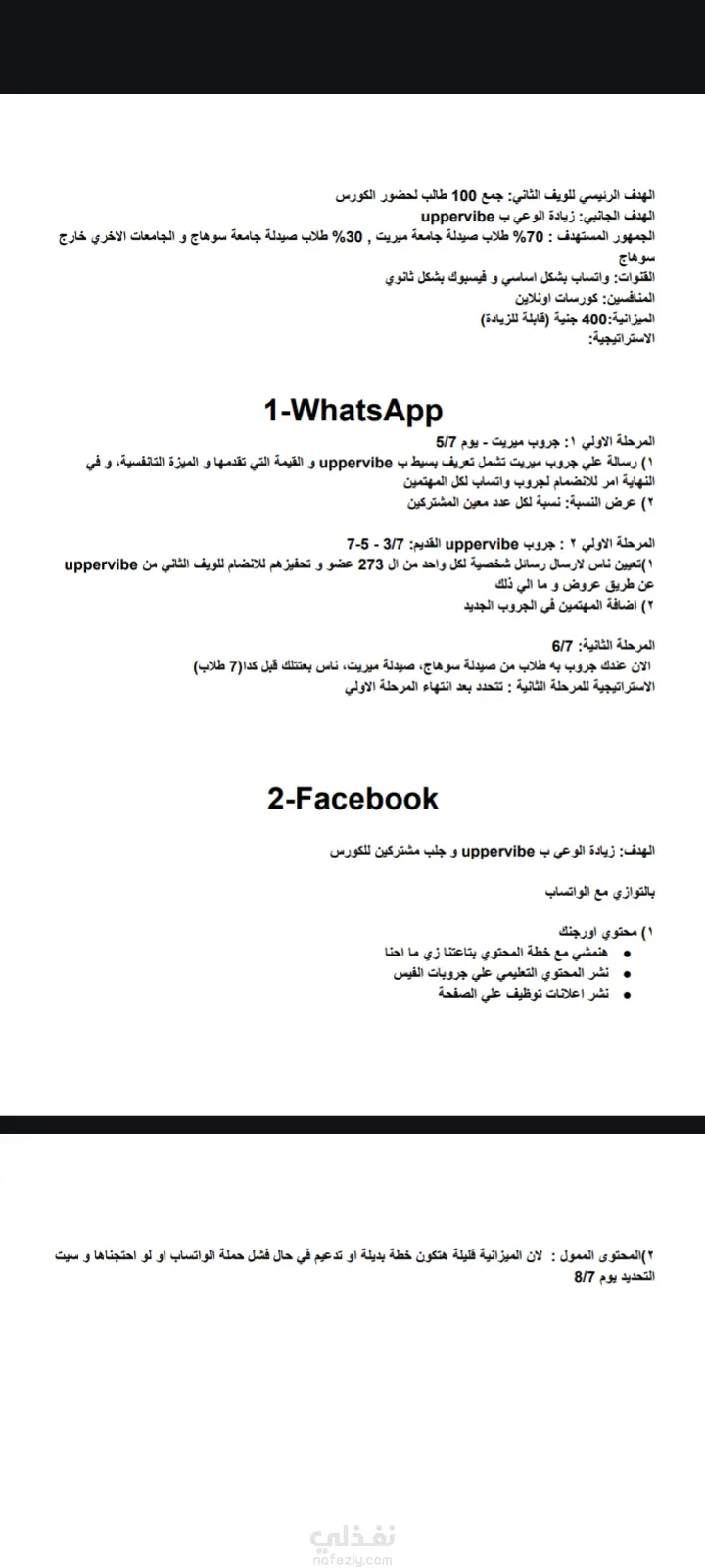 قمت بادارة التسويق لشركة uppervibe للكورسات الطبية، قمت بعمل استراتيجيات تسويقية و ادارة الحملات التسويقية و انشاء محتوي و خطط محتوي و قمت بعمل تصميمات المحتوي، و خلال فترة عملي مع الشركة حققنا الاهداف المطلوبة و التي كانت زيادة الوعي بالبراند و جلب 50 طالب لحضور الwave الاول و حضور 100 للwave الثاني