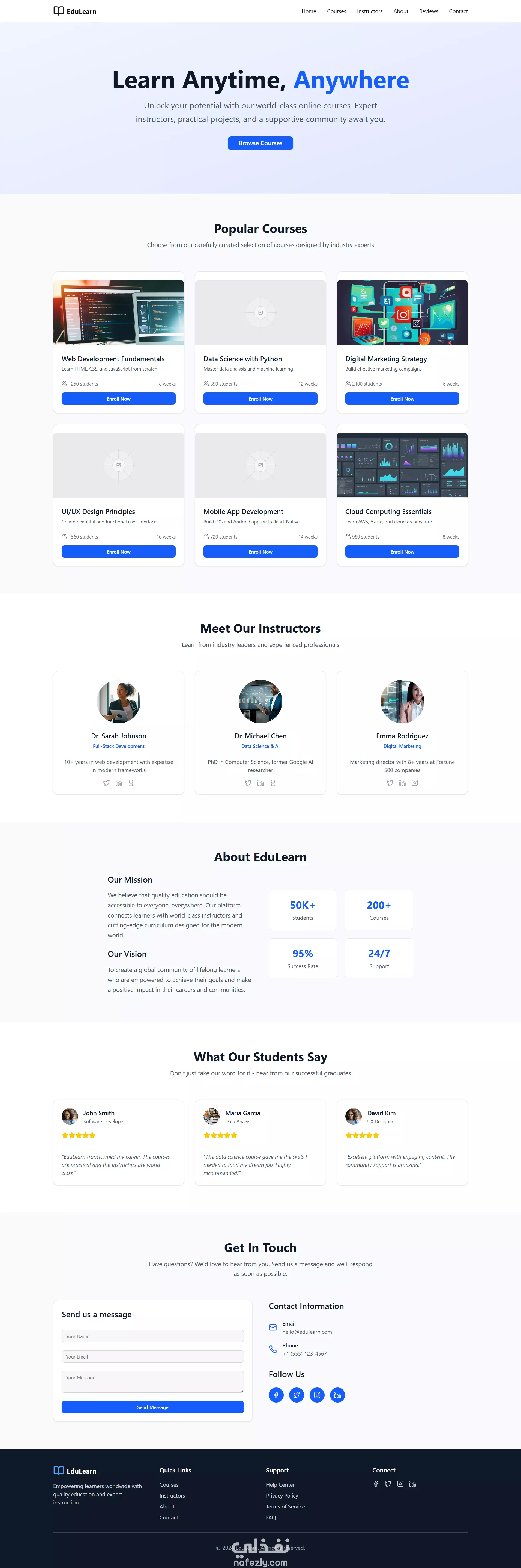 EduLearn هي منصّة تعليمية أونلاين بتديك إمكانية التعلّم في أي وقت ومن أي مكان. بتجمع بين دورات عالية الجودة، ومدربين محترفين، ومشاريع عملية، ومجتمع داعم يساعدك تطوّر مهاراتك وتبني بورتفوليو قوي. المنصّة مناسبة للطلاب والخريجين والموظفين اللي عايزين يطوّروا نفسهم بسرعة وبشكل عملي. القيمة المضافة محتوى مُنتقى من خبراء الصناعة. مشاريع تطبيقية تبني خبرة حقيقية. مسار تعلّم واضح من المبتدئ للمحترف. مجتمع ومتابعة من المدرّسين وأسئلة/أجوبة مباشرة. شهادات إتمام يمكن إضافتها للـLinkedIn والبورتفوليو. الفئات المستهدفة طلاب BIS وCS وIT. المبتدئون في البرمجة وتحليل البيانات والتصميم. محترفون عايزين يحدّثوا مهاراتهم أو ينتقلوا لمجال جديد.