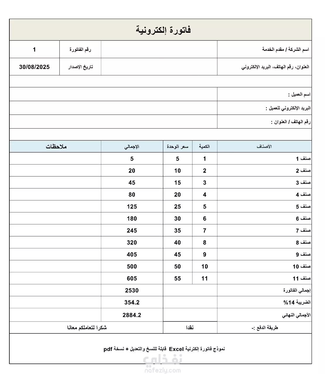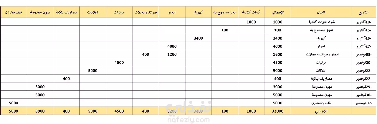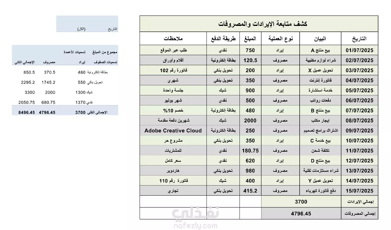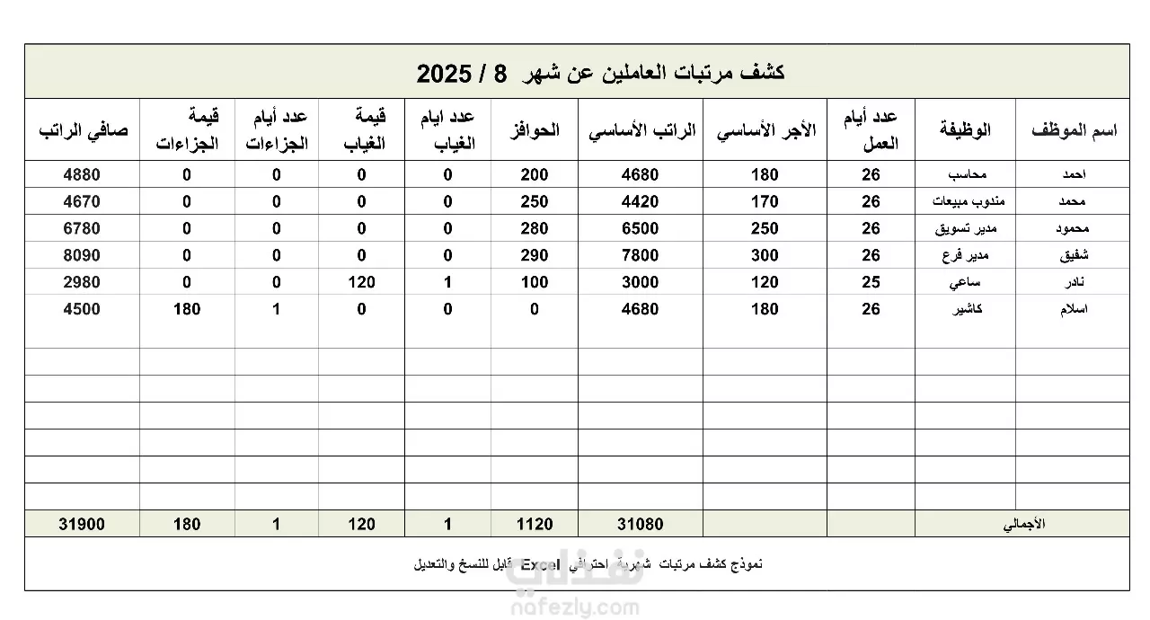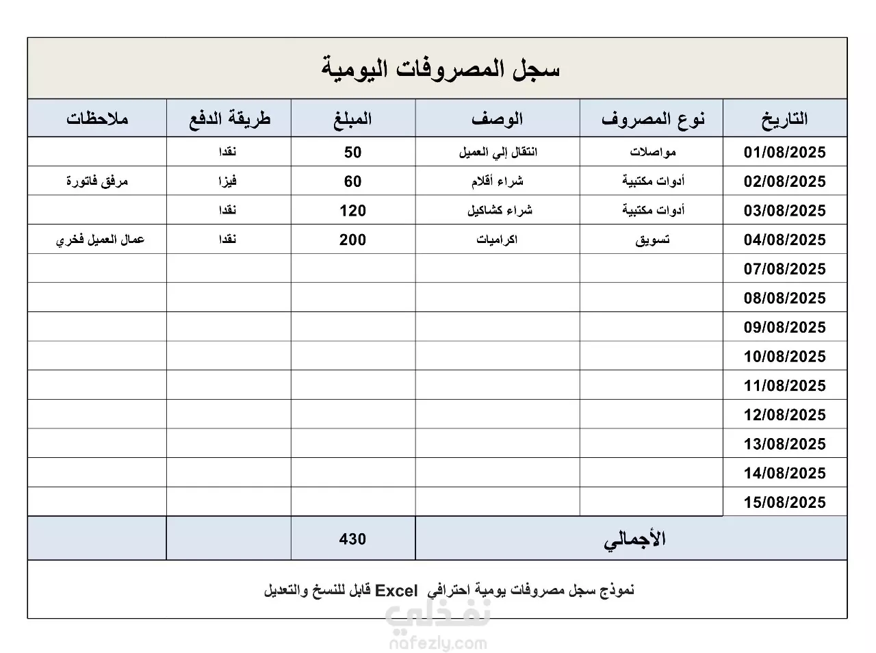 ملف Excel مفتوح، قابل للتعديل، يساعدك على تنظيم حساباتك بكل سهولة.