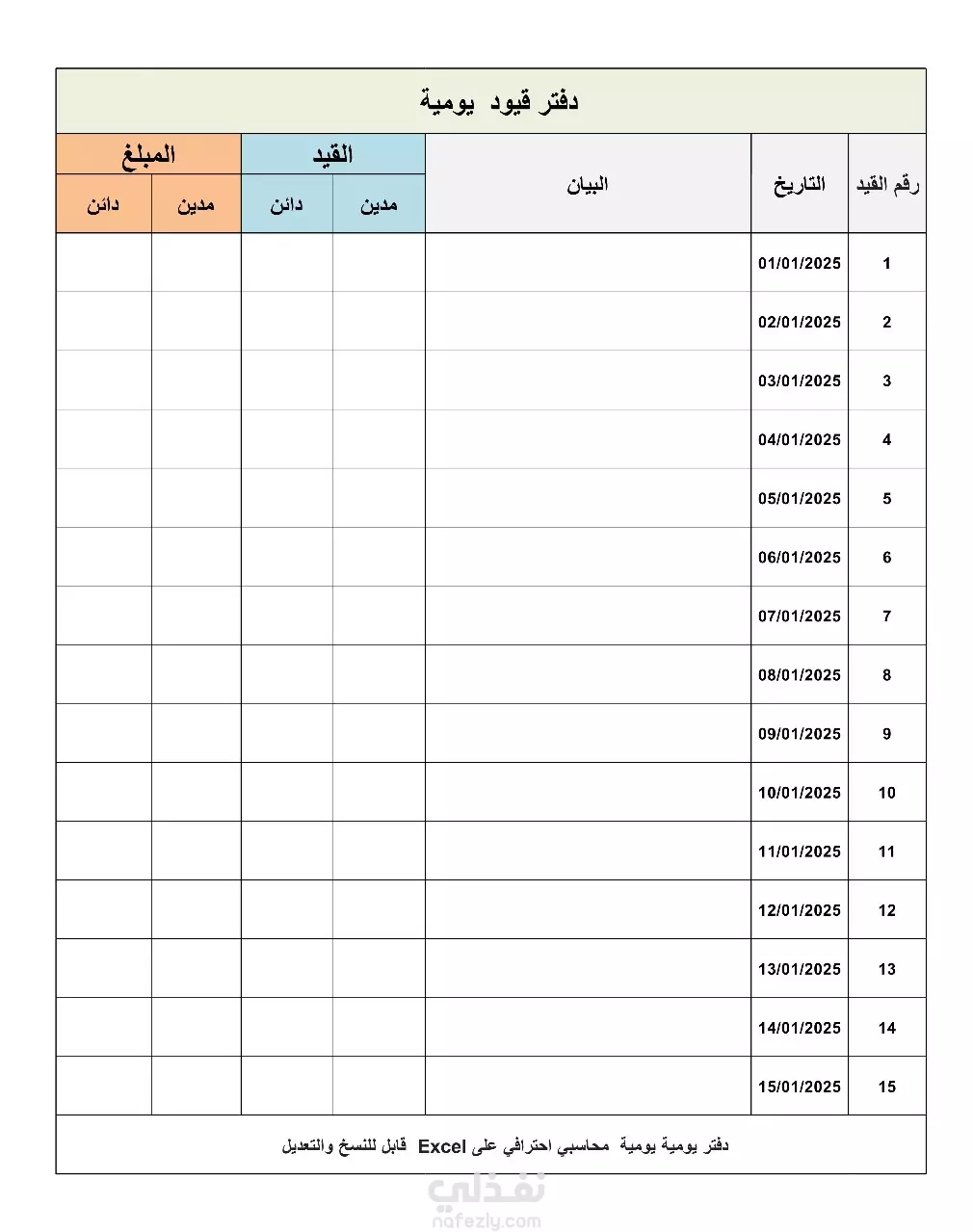 تصميم احترافي جاهز للاستخدام. دوال وصيغ محاسبية مضبوطة.