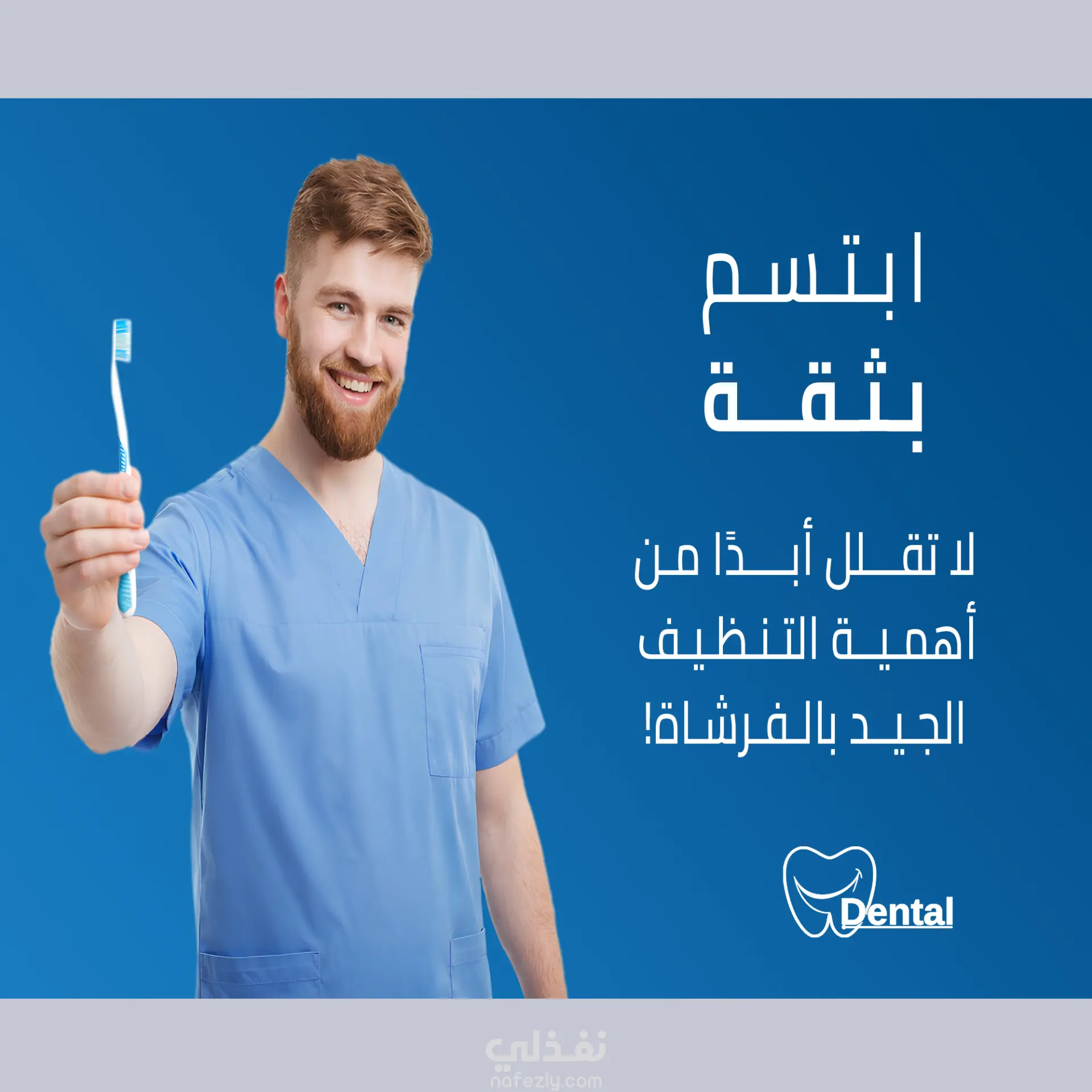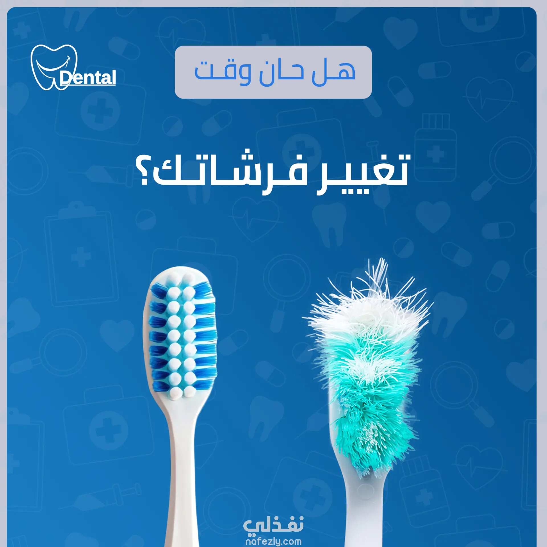 إدراج أيقونات ورسومات متعلقة بطب الأسنان مثل (ابتسامة – سن – فرشاة أسنان – أدوات طبية)، لتعزيز هوية العلامة البصرية.