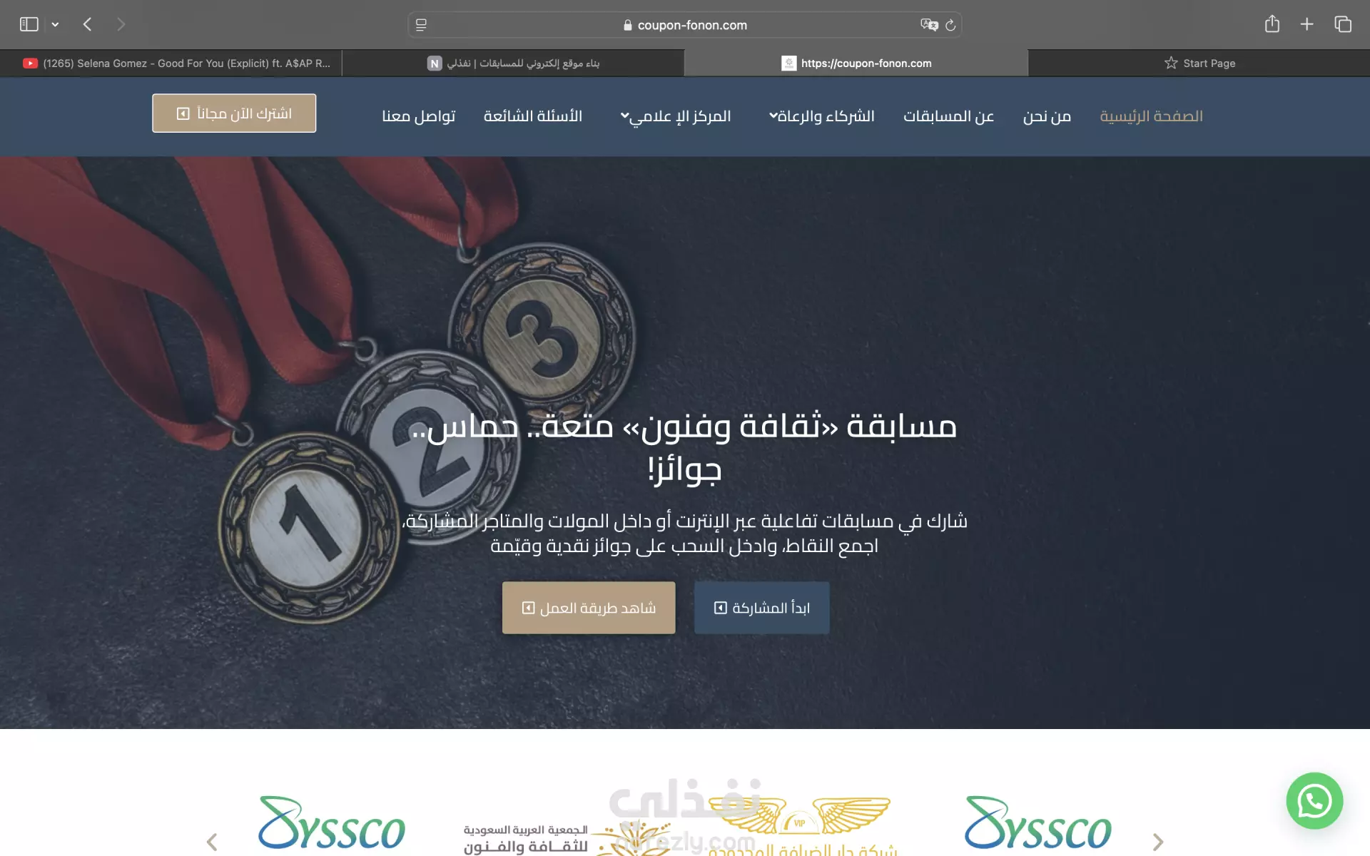 إنشاء مشروع يخص المسابقات في السعودية تحديدا بالرياض الفكرة الأساسية: منصة رقمية لتنظيم مسابقات تفاعلية تجمع بين الثقافة، الترفيه، والتسويق. آلية العمل: يقوم المستخدم بإنشاء حساب والمشاركة في المسابقات (إلكترونيًا أو عبر QR في المولات). رابط المشروع : coupon-fonon.com