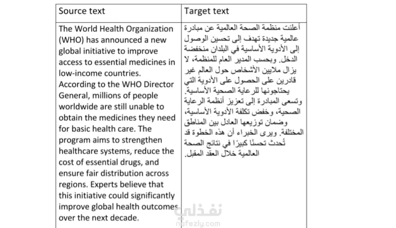 ترجمة صحفية عن منظمة الصحة العالمية وإعلانها عن المبادرة العالمية الجديدة لتحسين وصول الأدوية الأساسية في البلدان المنخفضة الدخل