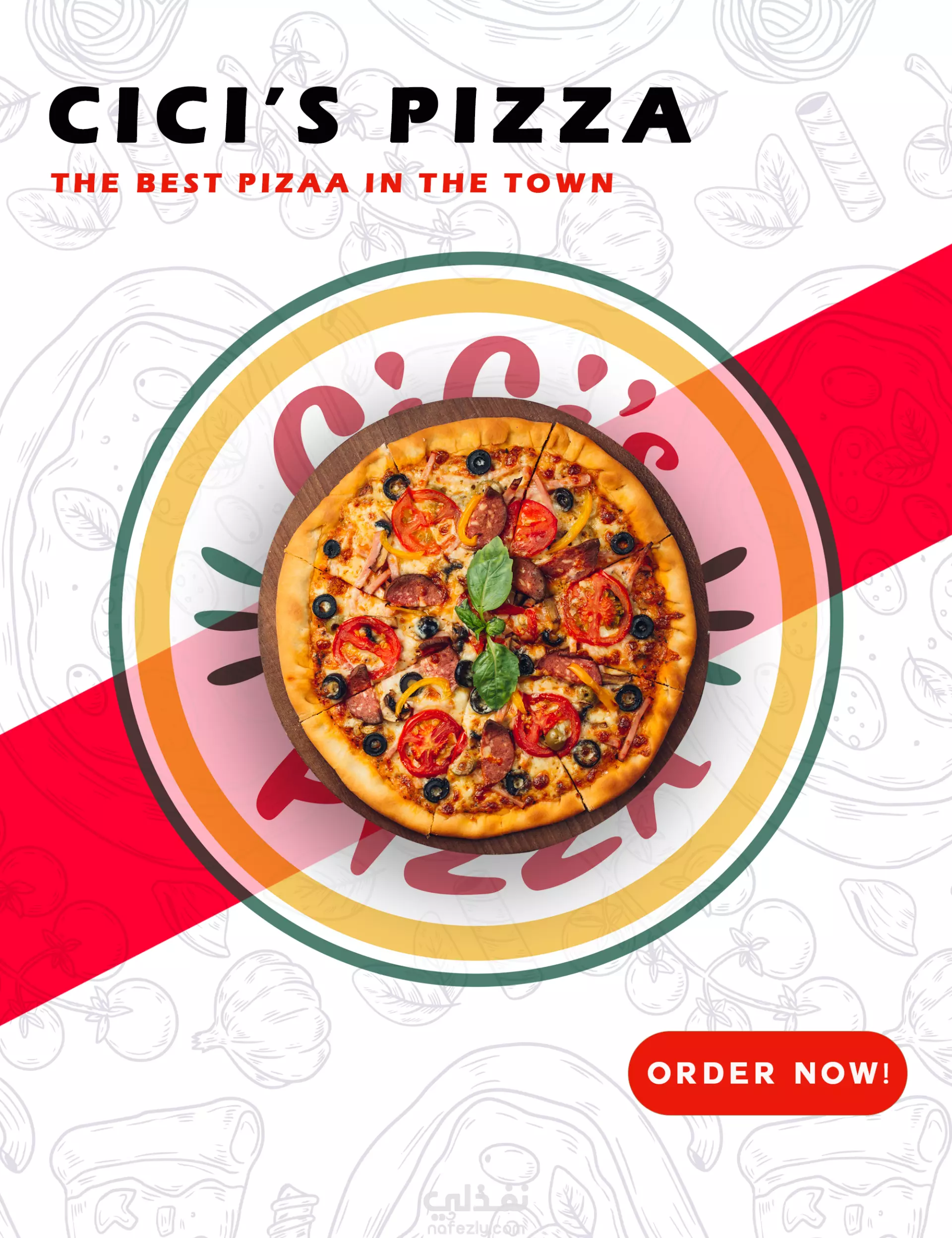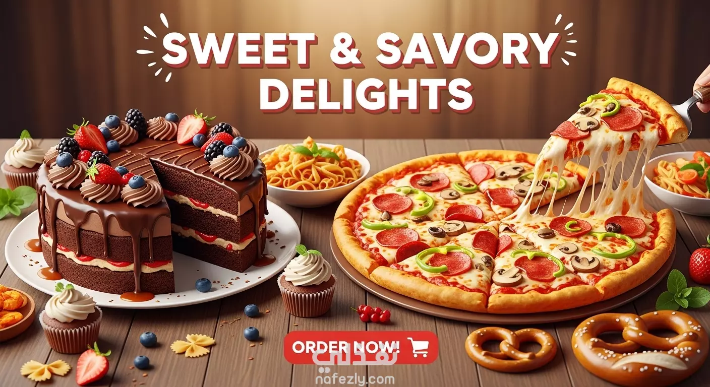 صور جذابة لأكلات مختلفة ( بيتزا، حلويات......) مع عرض المكونات أو عروض الافتتاح بشكل يشوّق.