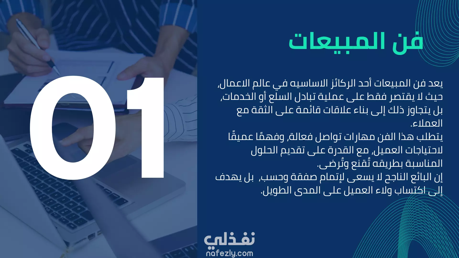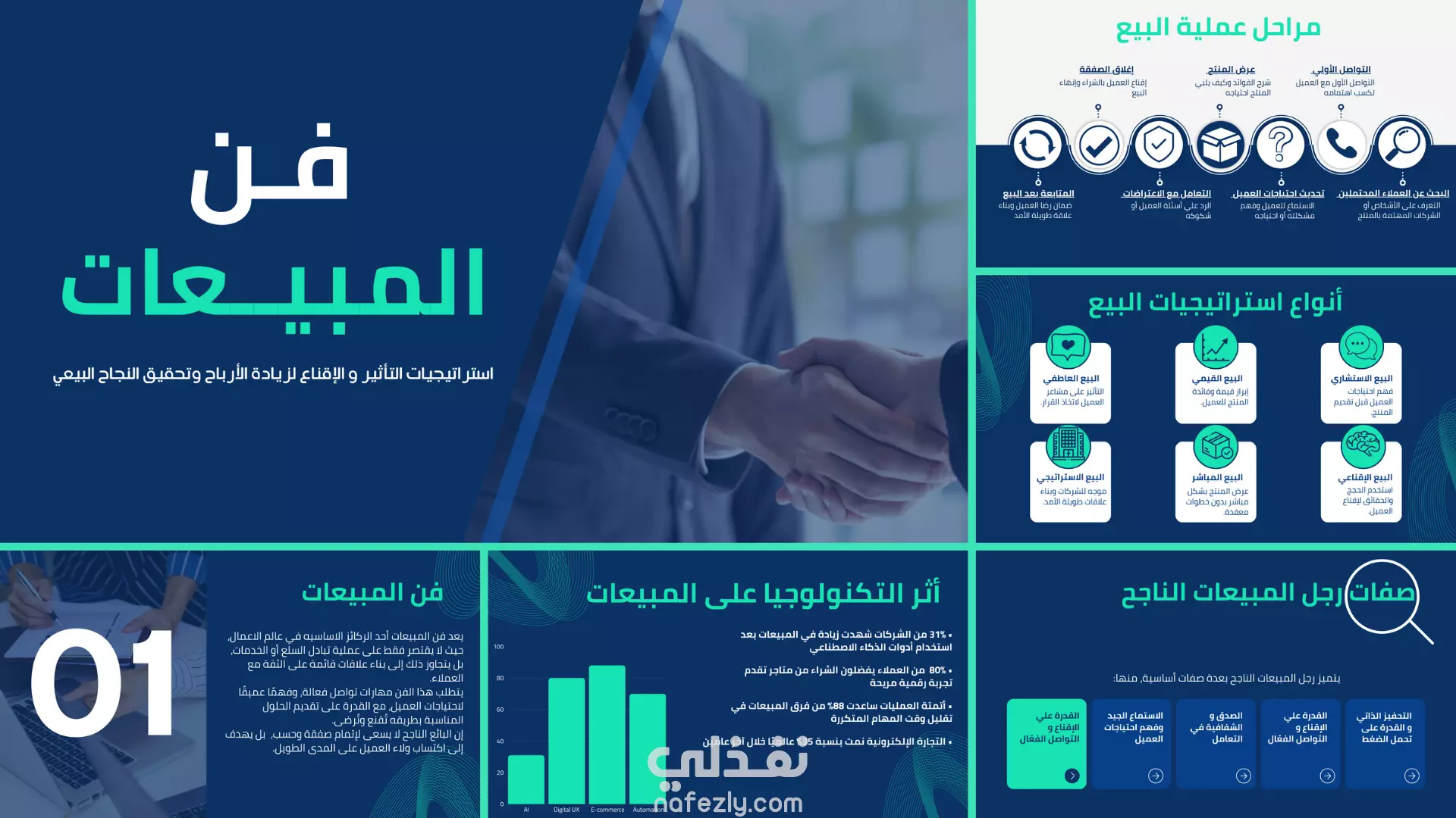 تم تنفيذ عرض بوربوينت احترافي يشرح موضوع "فن المبيعات" باستخدام تصميم بصري جذاب ومنظم. العمل يتضمن: - استخدام صور عالية الجودة تعبر عن مضمون الشرائح. - اختيار أيقونات توضيحية حديثة لدعم المحتوى النصي بصريًا. - تنظيم المعلومات في شرائح منسقة بتوازن بين النص والصورة. - توظيف الألوان بشكل مدروس لتعزيز التركيز وسهولة القراءة. - تبسيط المعلومات المعقدة وعرضها بطريقة مرئية تساعد على الفهم السريع. النتيجة: عرض تعليمي أو تدريبي احترافي مناسب للشركات أو المدربين، يعكس فهمًا قويًا للمحتوى والتصميم معًا.