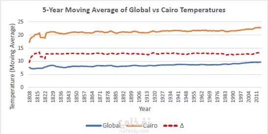 استكشاف تغيرات درجات الحرارة في القاهرة مع المتوسط العالمي