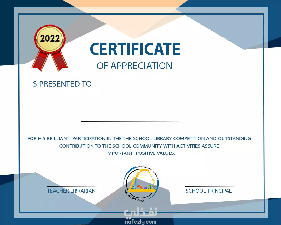 تصميم لشهادات تقدير لتكريم الطلبة بأحد المدارس