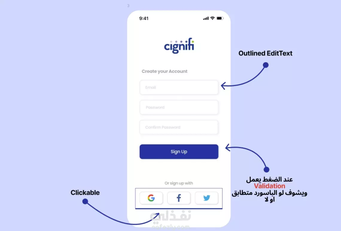 تصميم وتنفيذ شاشة Sign Up لتطبيق Android