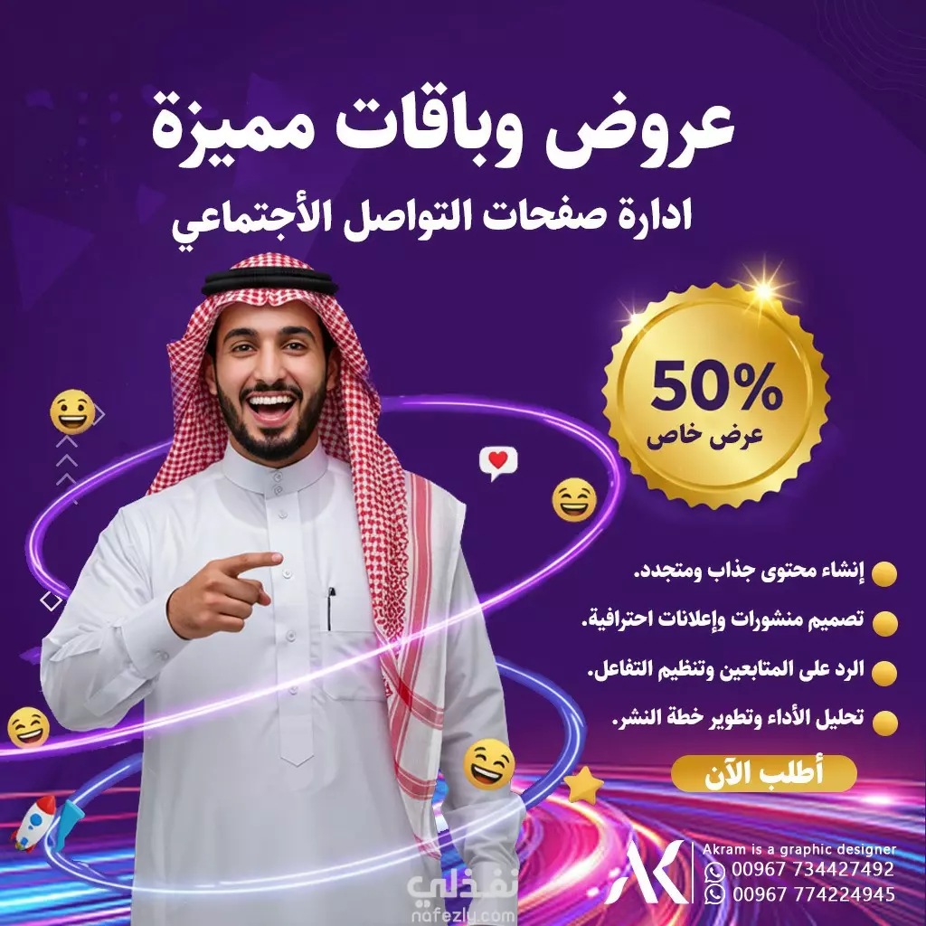 ✨ عروض تصاميم السوشيال ميديا ✨ 🖼️ التصميم الواحد: 10 دولار عدد التعديلات2 فقط 📦 باقة خاصة: أكثر من 5 تصاميم بسعر 5 دولار للتصميم الواحد تعديل واحد لكل تصميم ✅ جودة عالية ✅ مقاسات مناسبة لجميع المنصات (إنستغرام – سناب – تويتر – فيسبوك) ✅ تسليم سريع مع إمكانية التعديل