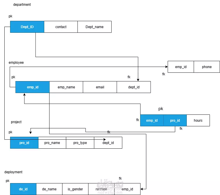 عمل mapping ل erd من خلال انشاء schema مع مرعاة relationship بين الجداول