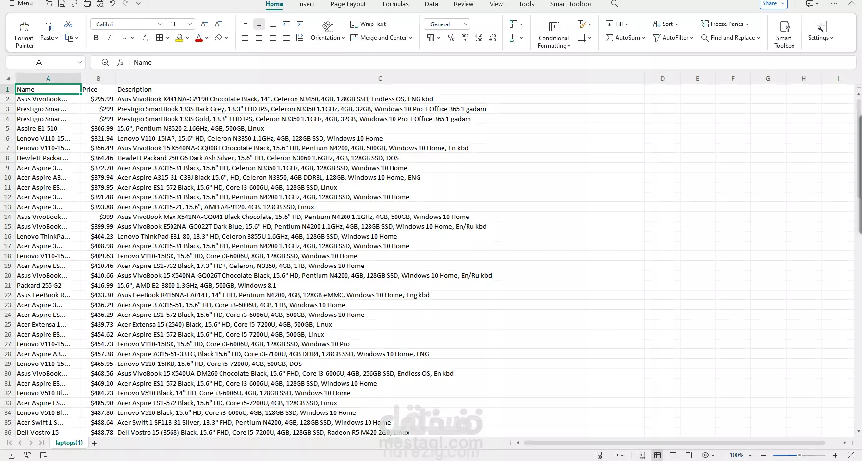 استخلاص بيانات اللابتوبات وحفظها في ملف csv