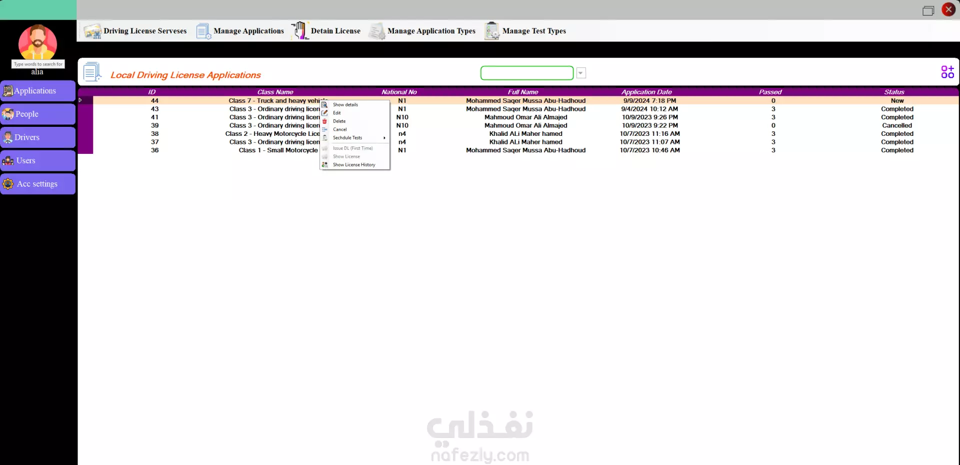 إدارة رُخَص القيادة وتسجيل المركبات ما بقتش عملية معقدة. طورت تطبيق سطح مكتب باستخدام C# (.NET Framework) + WinForms + SQL Server بيخلي العملية أسرع وأسهل. المميزات الأساسية: التقديم على الرخص المحلية والدولية بكل سهولة إدارة الطلبات، التجديدات، والاختبارات بشكل منظم حجز وإفراج الرخص بكفاءة عالية لوحة تحكم ذكية لتبسيط المتابعة اليومية النتيجة: نظام متكامل بيضمن كفاءة، سرعة، ودقة في التعامل مع بيانات الرُخص والمركبات.