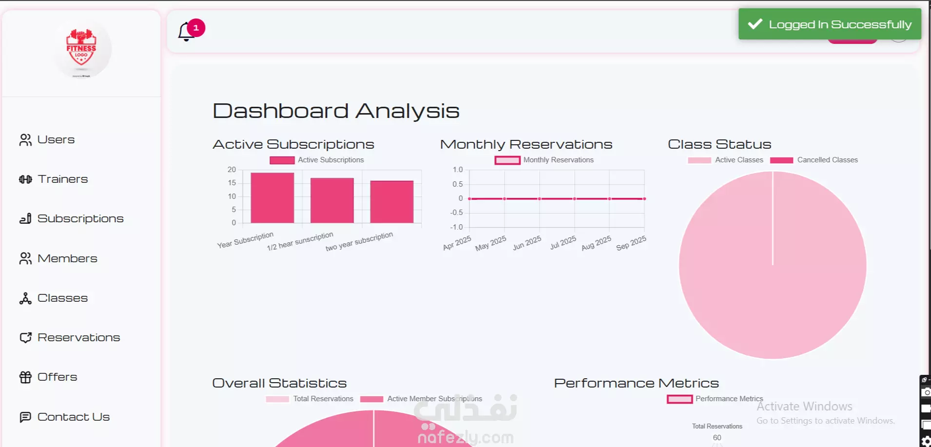 لوحة تحكم لصالة رياضيه (gym dashboard panel)