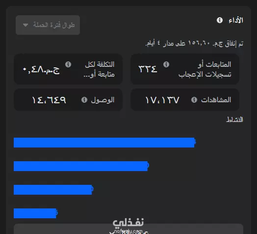 نفذت حملتين إعلانيتين لبراند "المهندس": حملة تفاعل: إنفاق 156.6 جنيه → 324 متابعة و17,137 مشاهدة في 4 أيام. حملة مبيعات: إنفاق 1,465 جنيه → 18 عملية شراء لـ32 زوج حذاء في 5 أيام. 🔑 النتيجة: زيادة المتابعين + مبيعات فعلية بميزانية محدودة.