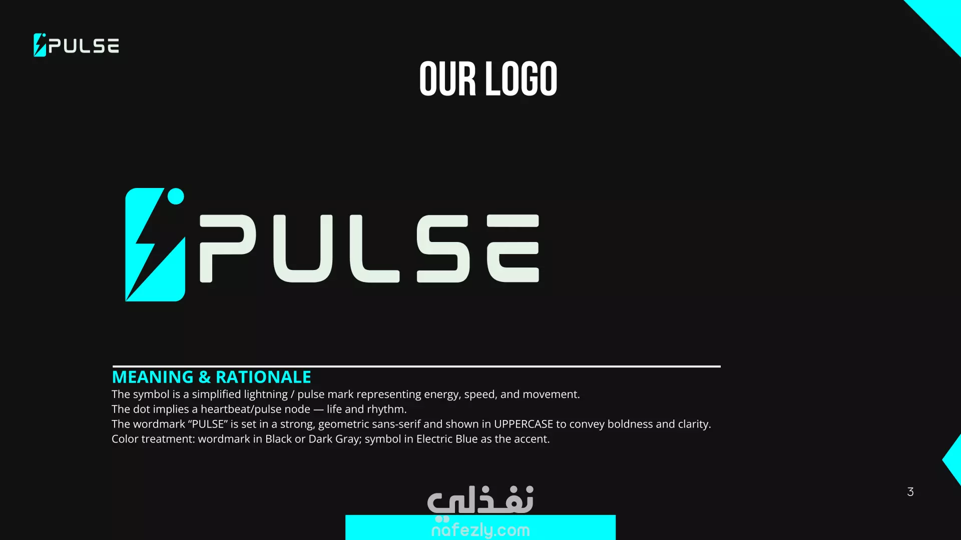 براند PULSE هو علامة ملابس رياضية حديثة تعكس معاني الطاقة، القوة، والحركة المستمرة. الهوية البصرية تم تصميمها بالاعتماد على خط عصري قوي مع أيقونة مستوحاة من موجة نبض القلب، لتعبر عن روح الرياضيين الذين لا يتوقفون عن السعي والإنجاز. تم اختيار ألوان الهوية لتجمع بين الأسود والرمادي كأساس قوي وحيادي، مع إضافة الأزرق الكهربائي كلمسة بارزة ترمز إلى الحماس، الأداء العالي، والتجديد. تم تطبيق الهوية عبر عناصر متعددة للبراند مثل: تصميم الشعار (النص والأيقونة). موكاب الملابس الرياضية (تيشيرت، بنطلون، كاب). الكروت الشخصية والقرطاسية. الإعلانات الخارجية (لافتات ولوحات إعلانية). غلاف مجلة كمفهوم إبداعي. المشروع يعكس جوهر البراند الرياضي العصري بهوية نظيفة، قوية، واحترافية مناسبة لسوق الملابس الرياضية.