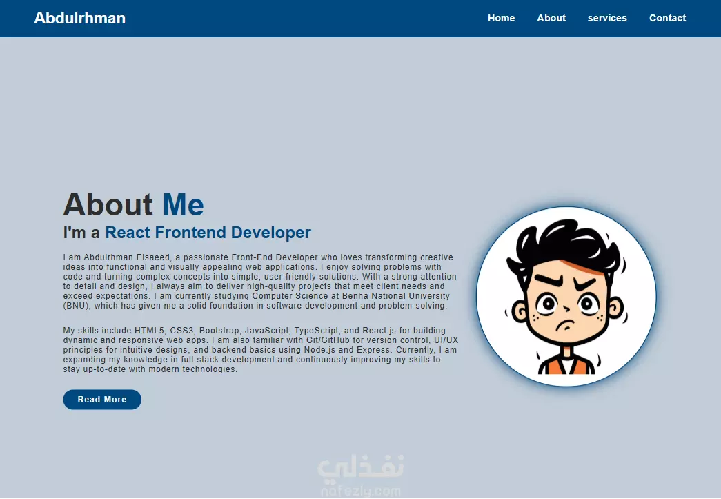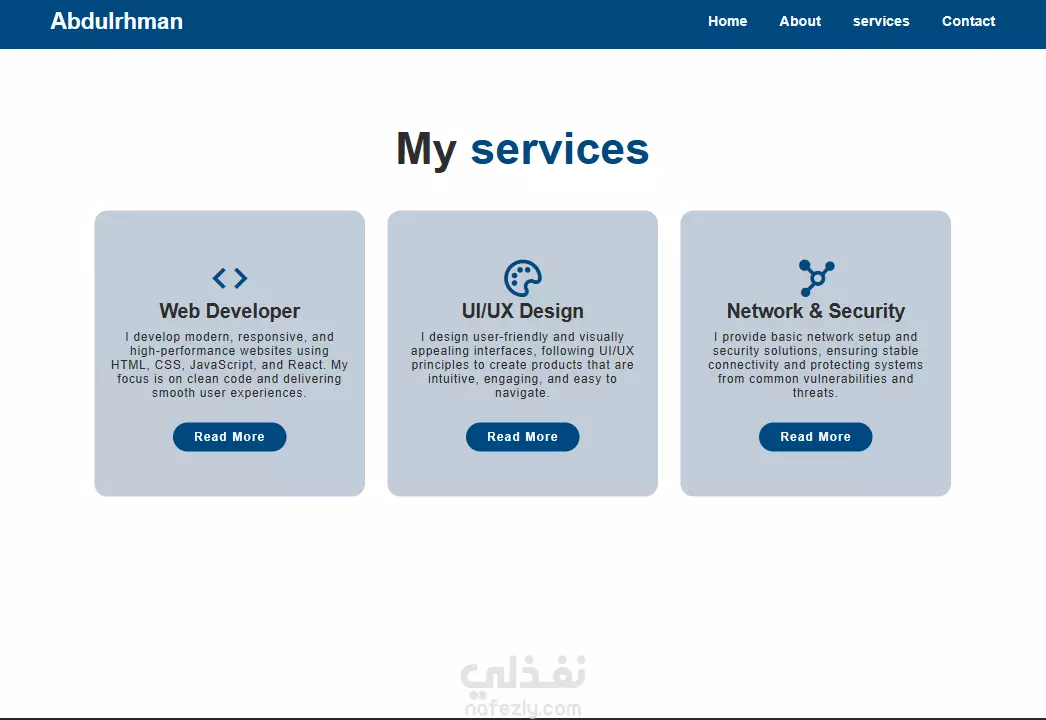أنا Abdulrhman، مطور ويب متخصص في الواجهات الأمامية (Frontend) باستخدام React. لدي شغف بتحويل الأفكار الإبداعية إلى مواقع وتطبيقات ويب عصرية وجذابة بصريًا. أقدم خدمات: تطوير الويب: بناء مواقع حديثة ومتجاوبة وعالية الأداء باستخدام HTML, CSS, JavaScript, React. تصميم UI/UX: تصميم واجهات مستخدم سهلة الاستخدام وتوفر تجربة سلسة. حلول الشبكات والأمان: توفير إعدادات أساسية للشبكات وحلول للحماية. أسعى دائمًا لتقديم عمل عالي الجودة مع التركيز على الكود النظيف، وتحسين الأداء، وتلبية توقعات العملاء.