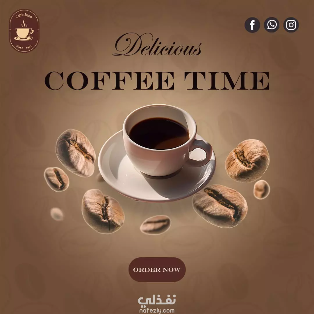 تصميم سوشيال ميديا خاص بمتجر قهوة