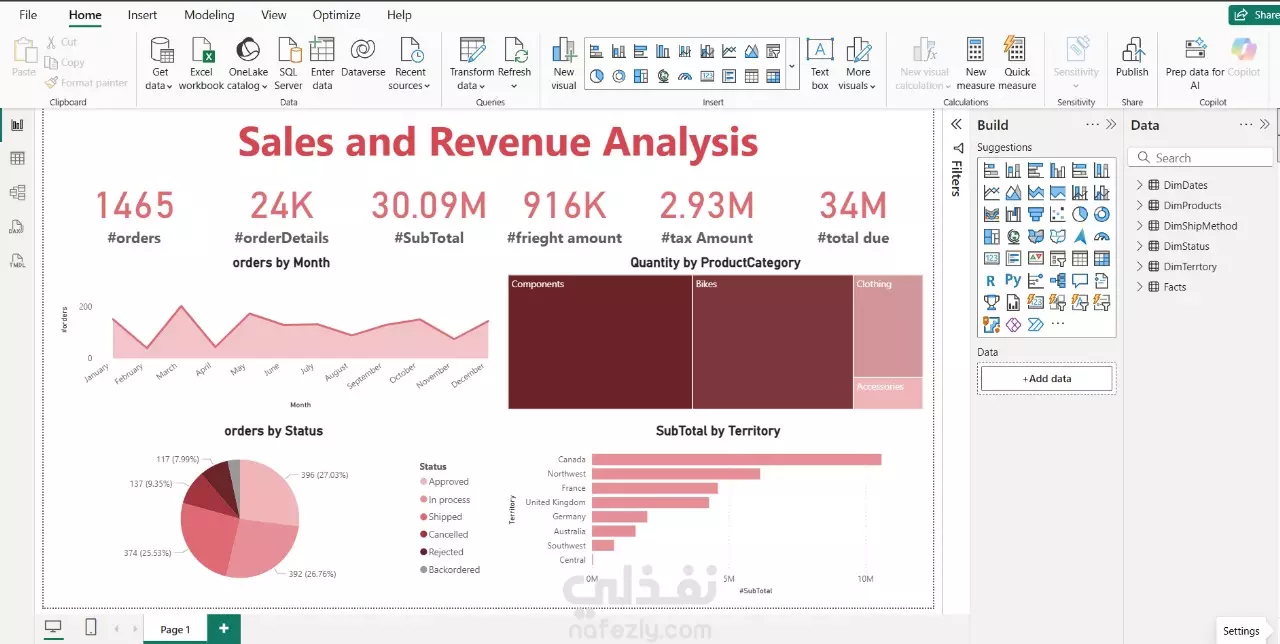 لوحة تحليل المبيعات والإيرادات باستخدام Power BI
