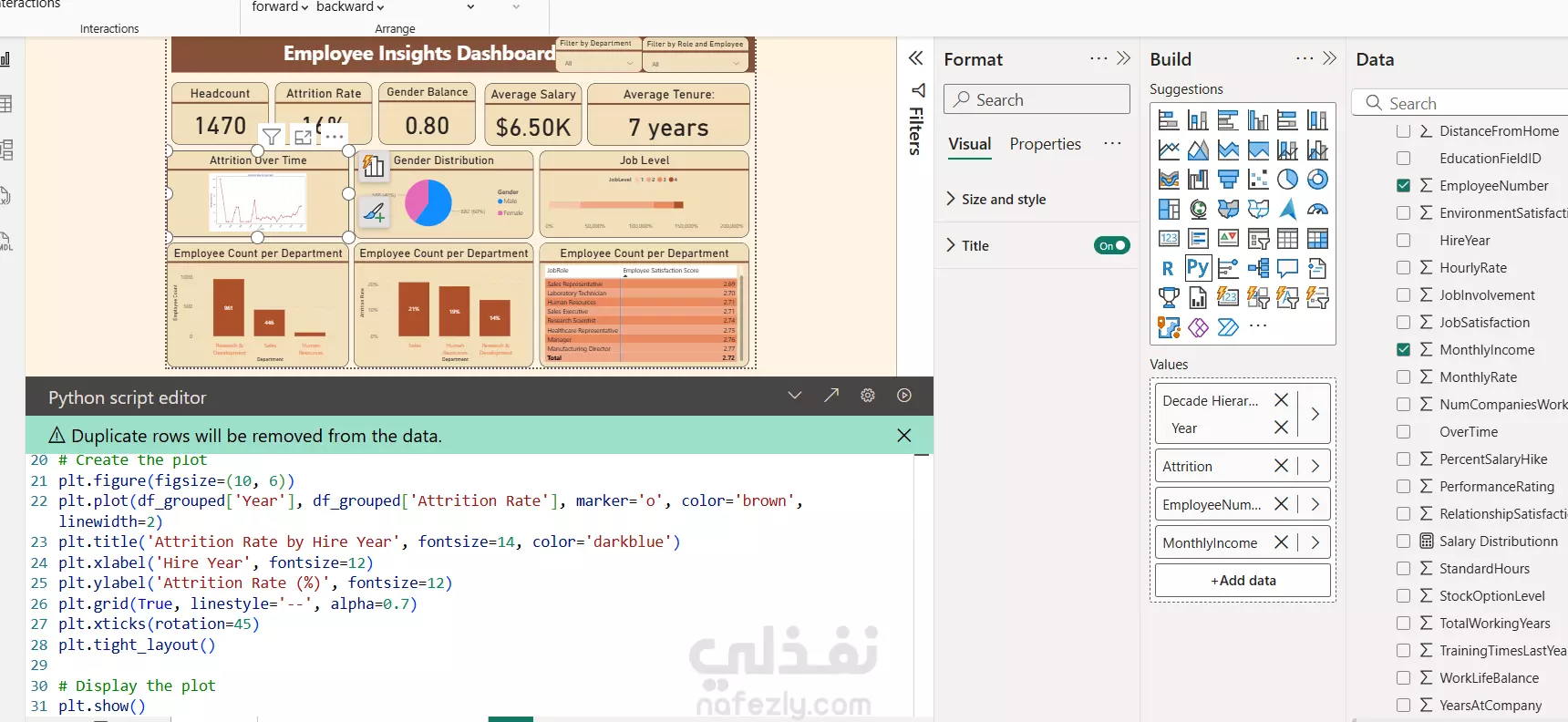 تم تنفيذ مشروع لتحليل وإدارة بيانات الموظفين باستخدام Microsoft SQL Server كمصدر رئيسي للبيانات مع ملفات Excel مساعدة. تم بناء نموذج بيانات متكامل وربطه بـ Power BI لتصميم لوحة تحكم تفاعلية تساعد الإدارة في متابعة شؤون الموظفين بشكل أفضل.