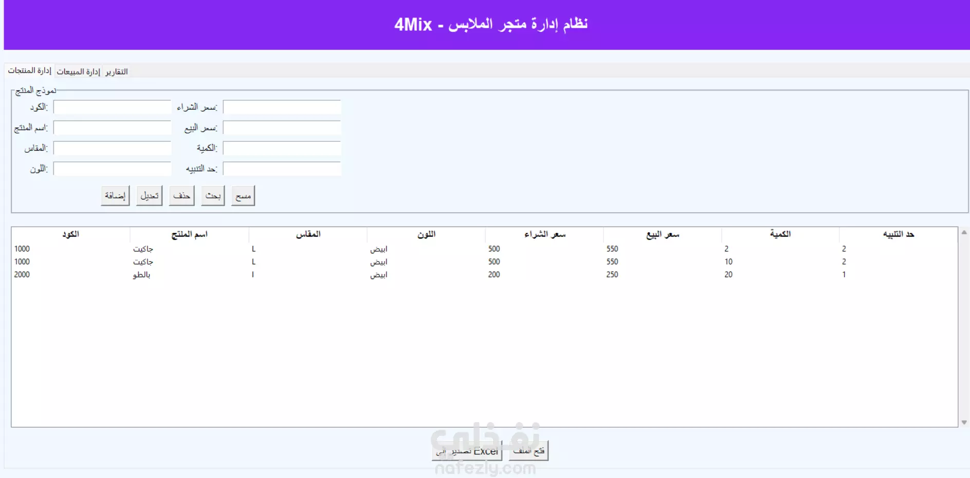 تطوير نظام متكامل لإدارة محل ملابس مع تقارير ولوحات تحكم وميزات التصدير إلى Excel وWord