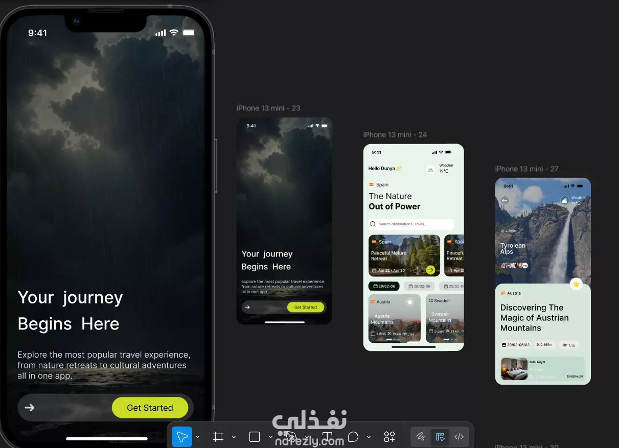 قمت بتصميم واجهات تطبيق موبايل خاص بتوقعات الطقس باستخدام Figma، مع التركيز على تجربة مستخدم سلسة وبسيطة. يشمل العمل: تصميم شاشة رئيسية تعرض حالة الطقس الحالية بشكل واضح وجذاب. إضافة شاشات تفصيلية لعرض درجات الحرارة اليومية والأسبوعية. استخدام ألوان مريحة وأيقونات معبرة لزيادة وضوح المعلومات. الاهتمام بتجربة المستخدم (UX) لضمان سهولة التنقل بين الصفحات. توفير نسخة متكاملة من واجهات التطبيق قابلة للتطوير البرمجي لاحقًا.
