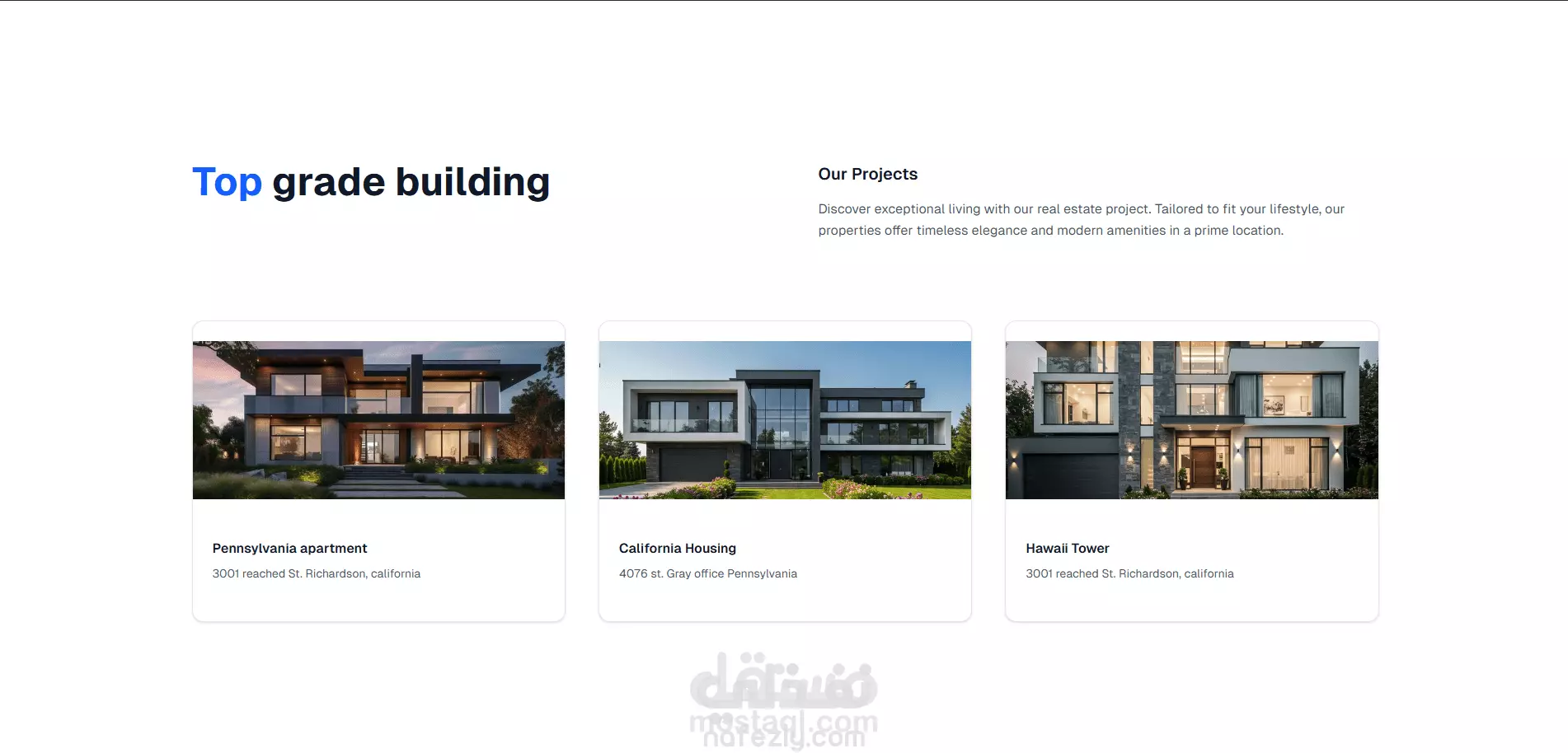 قمت بتطوير وتصميم واجهة موقع عقاري (Landing Page) كاملة باستخدام TypeScript و Next.js مع اعتماد تصميم عصري ومتجاوب، يحتوي على أقسام رئيسية مثل الـ Hero Section، نبذة عن الشركة، الإحصائيات، المشاريع، الأسئلة الشائعة، والفوتر. الموقع سريع، متوافق مع مختلف الأجهزة، ومهيأ لمحركات البحث (SEO).