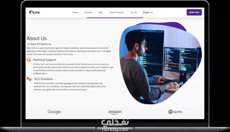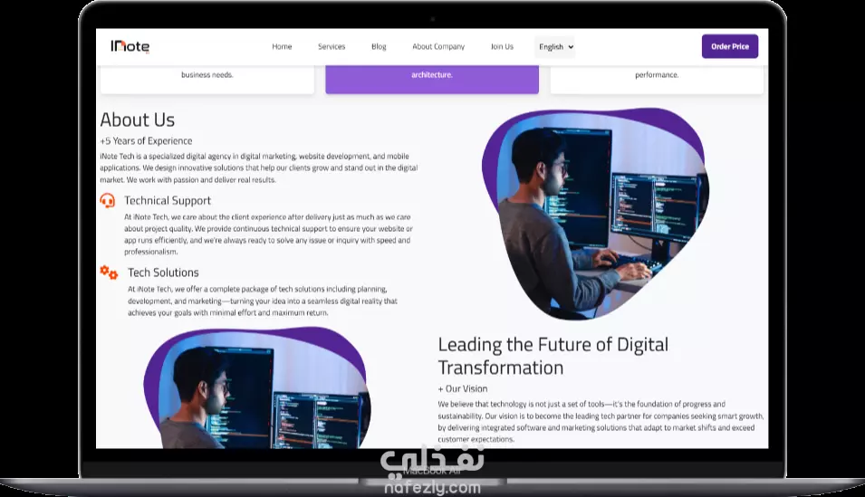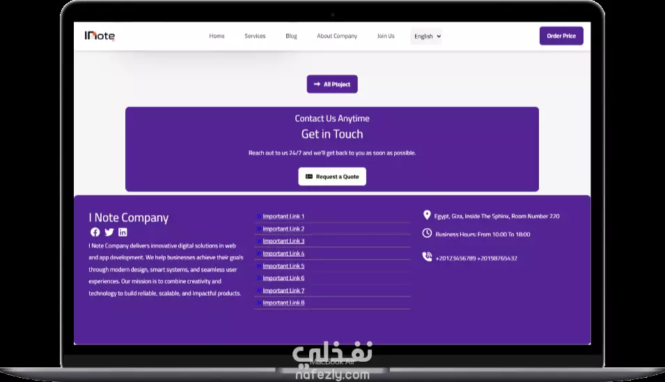 إنشاء موقع تعريفي احترافي لشركة برمجيات متعددة التخصصات واللغات (INote Company) أرغب في تنفيذ موقع إلكتروني تعريفي احترافي لشركة برمجيات باسم INote Company، وهي شركة تقنية تقدم خدمات متكاملة في جميع تخصصات البرمجة، وتستهدف جمهورًا عربيًا وعالميًا، لذا يجب أن يدعم الموقع اللغتين العربية والإنجليزية بشكل سلس. - تصميم واجهة مستخدم جذابة وعصرية تعكس هوية الشركة - دعم كامل للغتين العربية والإنجليزية مع إمكانية التبديل بينهما - صفحات أساسية تشمل: - من نحن - خدماتنا (Frontend, Backend, Mobile, AI, وغيرها) - مشاريعنا السابقة - آراء العملاء - تواصل معنا - تحسين تجربة المستخدم (UX) وتوافق التصميم مع جميع الأجهزة - تضمين رؤية الشركة وشهادات العملاء بشكل احترافي - ربط الموقع بمنصات التواصل الاجتماعي - دعم SEO لتحسين ظهور الموقع في محركات البحث - إمكانية التوسع لاحقًا لإضافة مدونة أو نظام حجز خدمات التقنيات المفضلة: HTML, CSS, JavaScript, Bootstrap (أو أي تقنيات حديثة يراها المنفذ مناسبة) الهدف من المشروع: بناء واجهة رقمية قوية تعكس احترافية INote Company وتساعد في جذب العملاء من مختلف أنحاء العالم، مع التركيز على تقديم تجربة مستخدم سلسة ومحتوى ثنائي اللغة عالي الجودة.