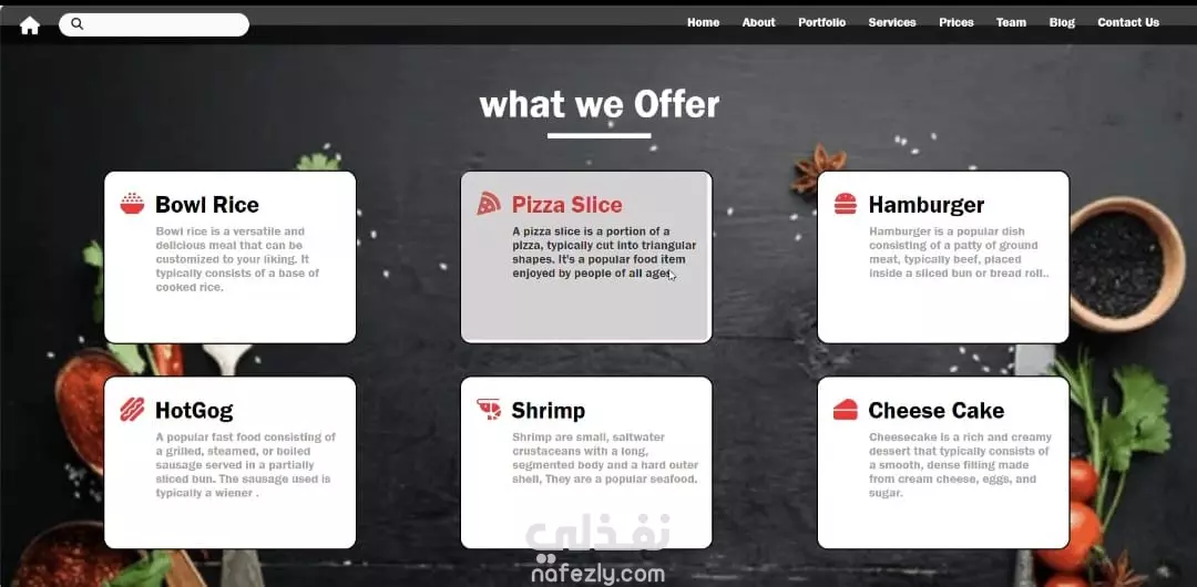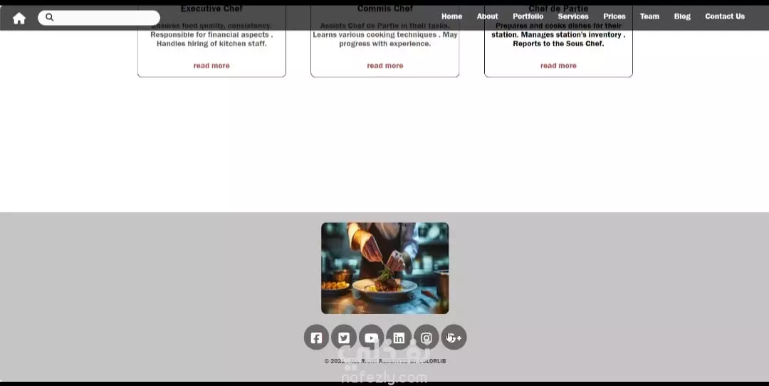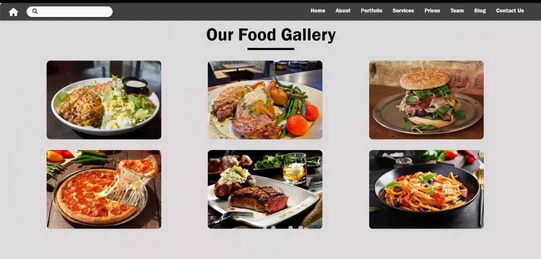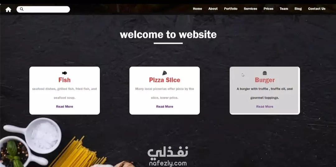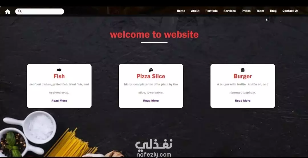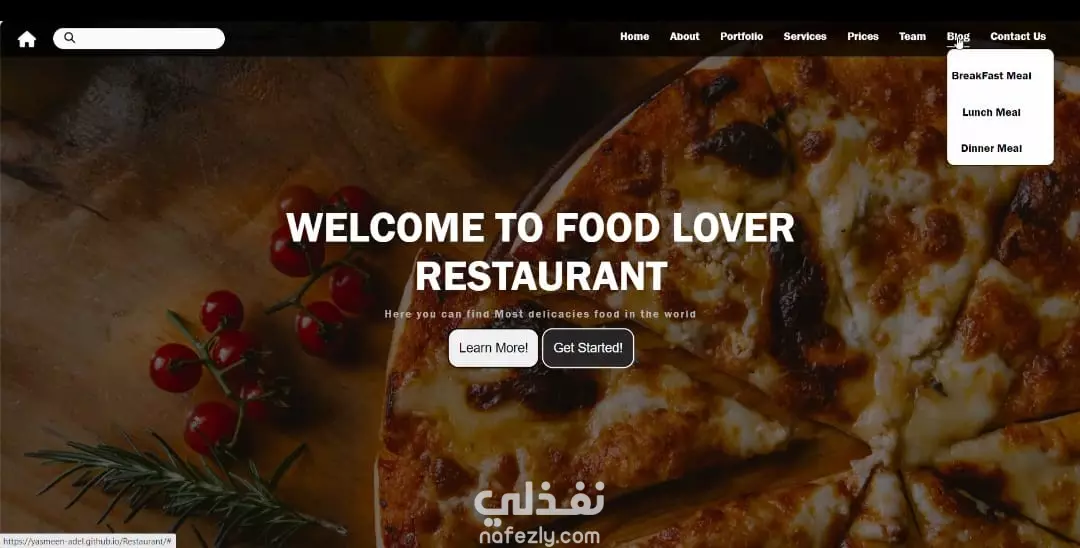 موقع مطعم أنيق يعرض المنيو، معلومات التواصل، وصف الأطباق وصور جذابة.