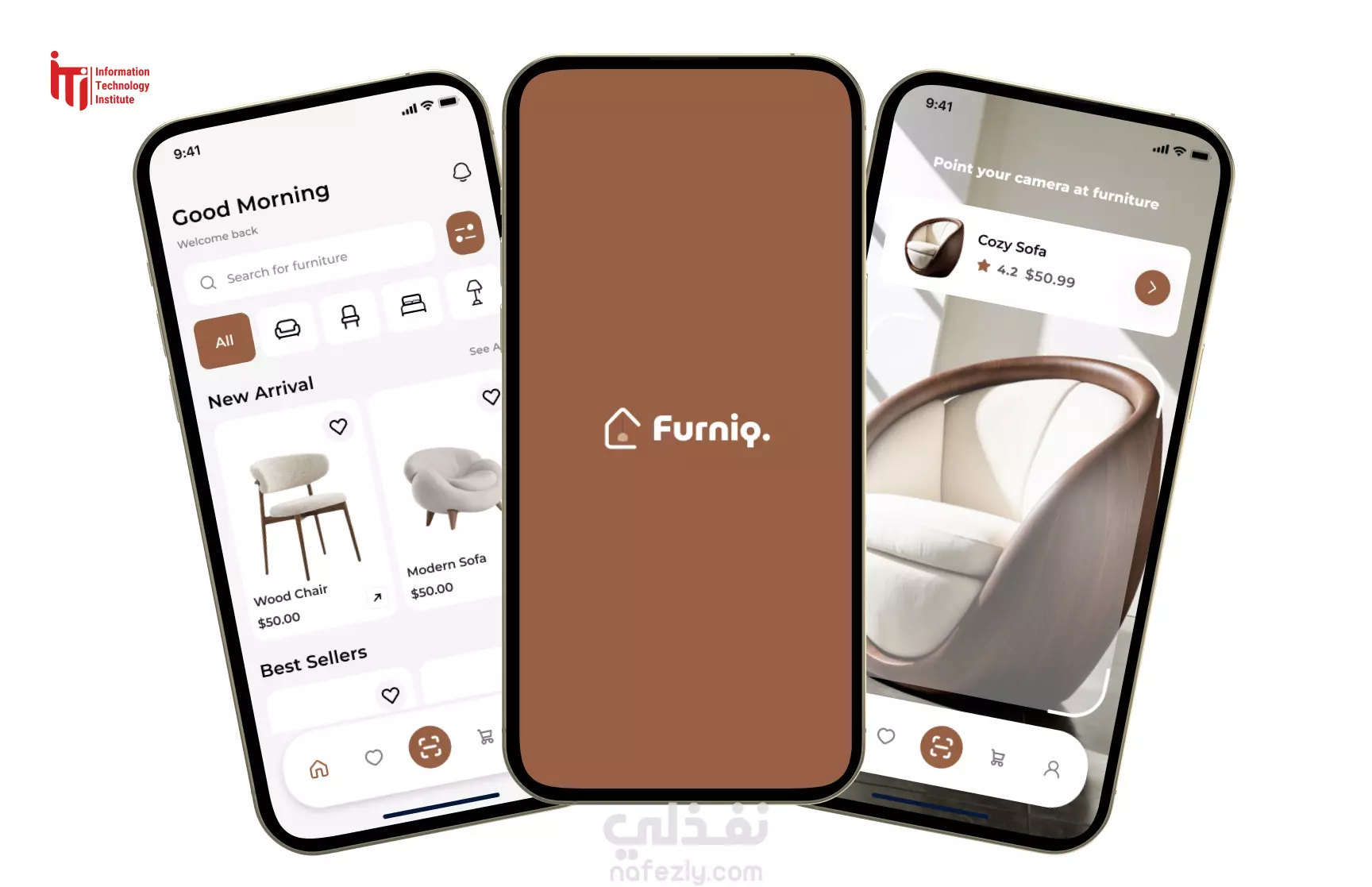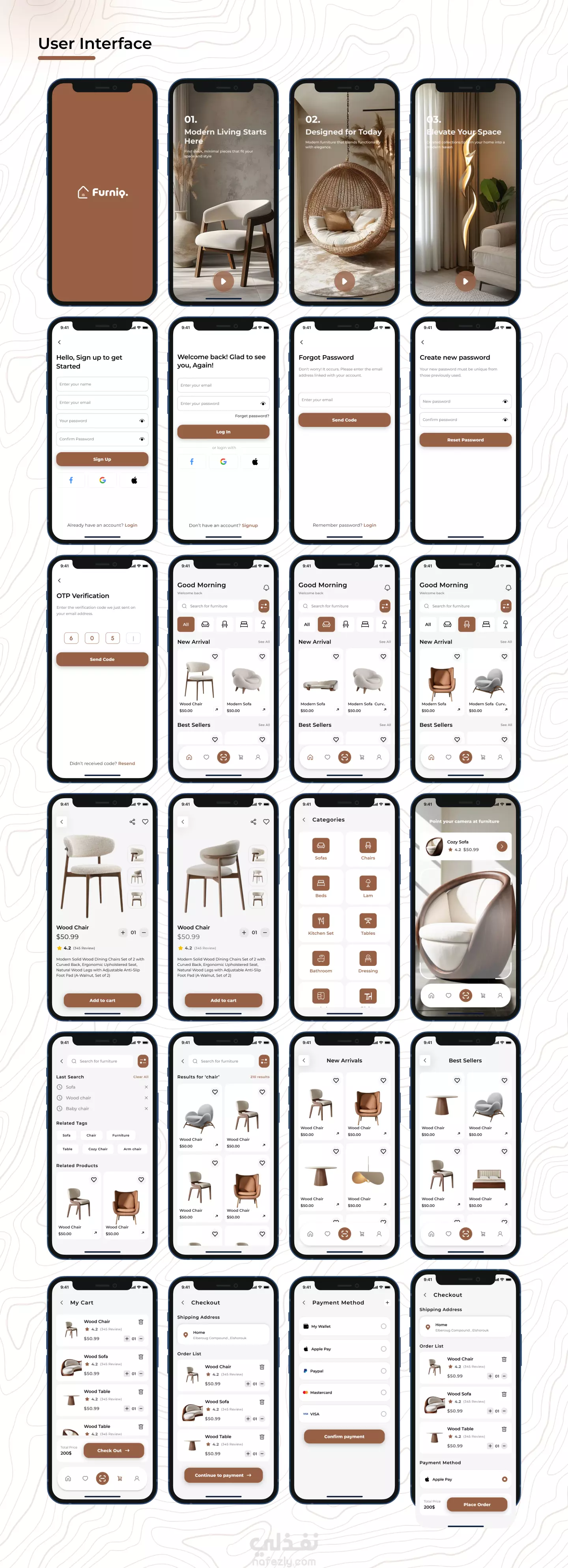 قمت بتصميم واجهات تطبيق FURNIQ، وهو تطبيق مخصص لتسوق الأثاث عبر الهاتف المحمول