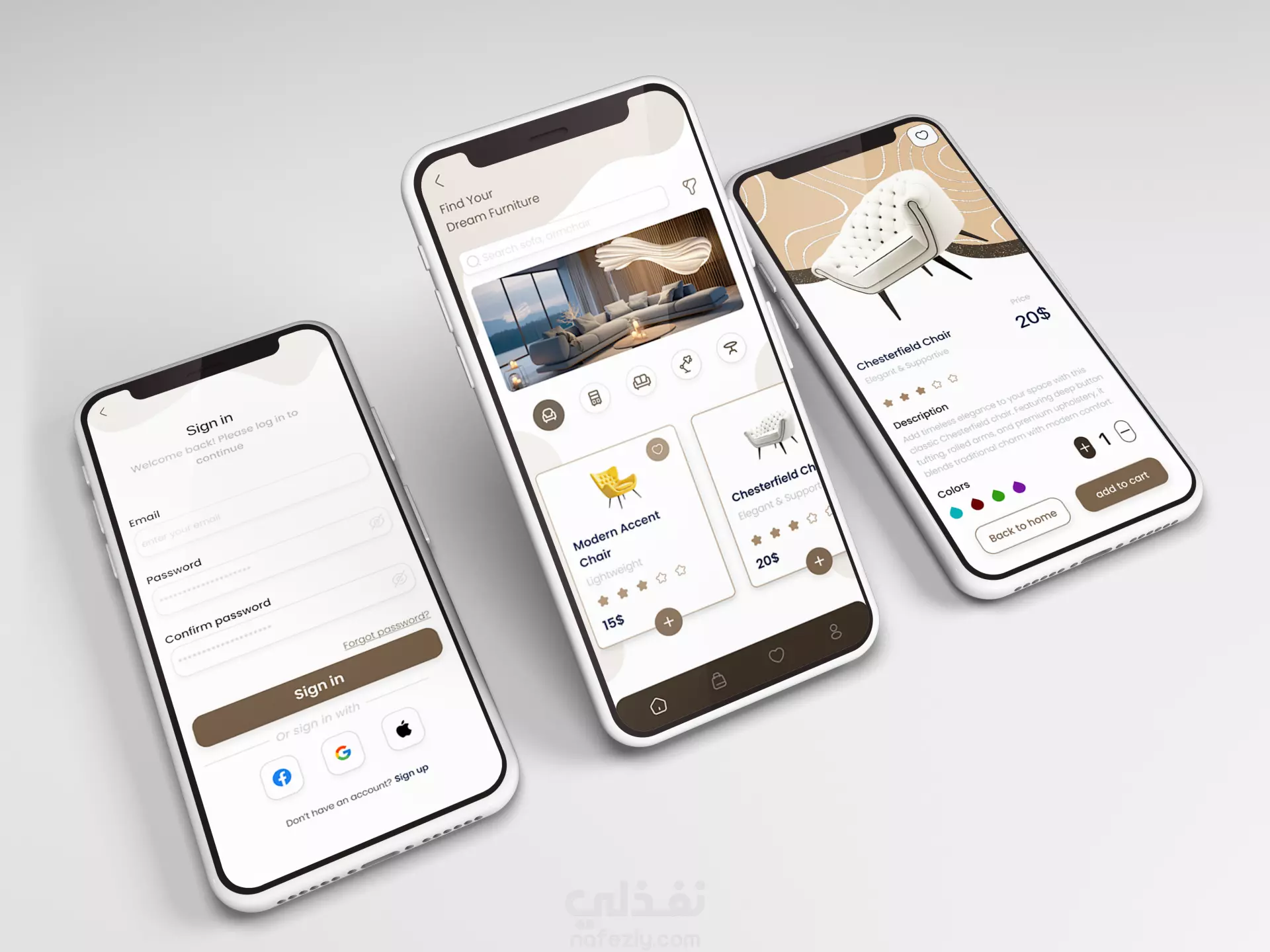 تصميم واجهة مستخدم عصرية لتطبيق تسوق الأثاث (Furniture App)
