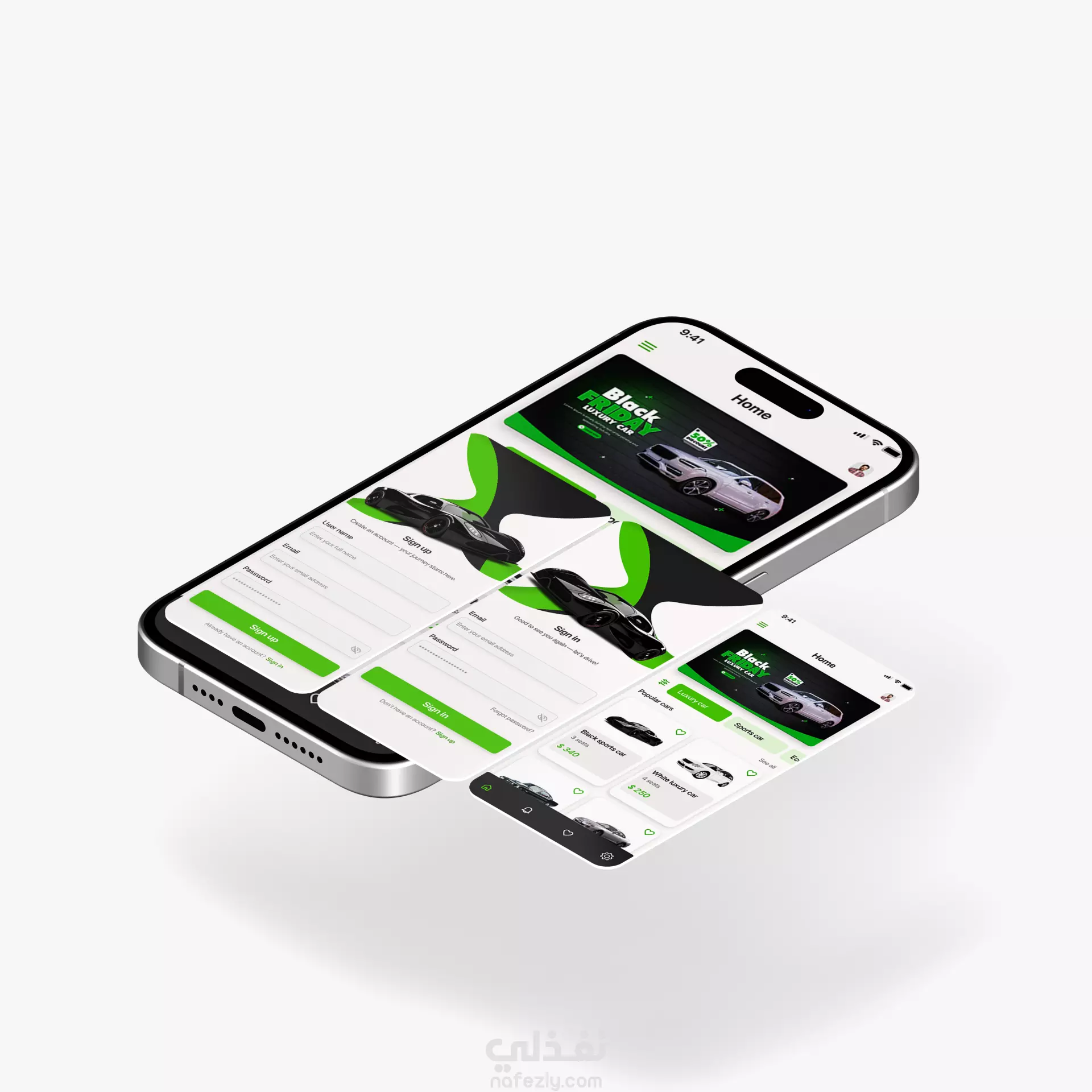 تصميم تطبيق موبايل لتأجير العربيات (Login – Signup – Home)