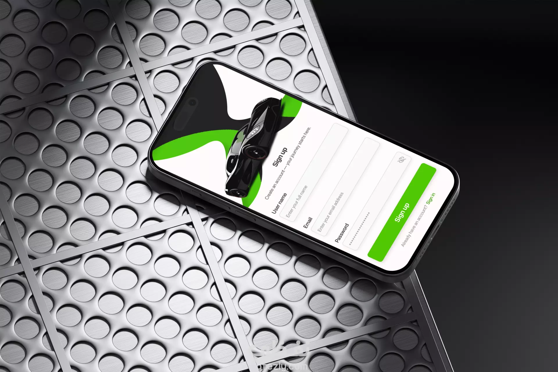 قمت بتصميم واجهات تطبيق موبايل خاص بخدمة تأجير السيارات، يركز على سهولة الاستخدام وتجربة مستخدم سلسة. التصميم مكوّن من 3 شاشات رئيسية: صفحة تسجيل الدخول (Login Screen): إدخال البريد الإلكتروني / رقم الهاتف وكلمة المرور. زر تسجيل الدخول. خيار "نسيت كلمة المرور". انتقال سريع إلى صفحة إنشاء حساب. صفحة إنشاء حساب (Signup Screen): إدخال البيانات الأساسية (الاسم – البريد الإلكتروني – رقم الهاتف – كلمة المرور). زر إنشاء حساب. رابط للعودة إلى صفحة تسجيل الدخول. الصفحة الرئيسية (Home Screen): تصنيفات (Categories) مثل: Luxury – Economy – Family – SUV. كروت سيارات (Car Cards) تحتوي على: صورة السيارة. اسم السيارة. عدد المقاعد. السعر واجهة بسيطة وألوان متناسقة تعكس هوية العلامة.