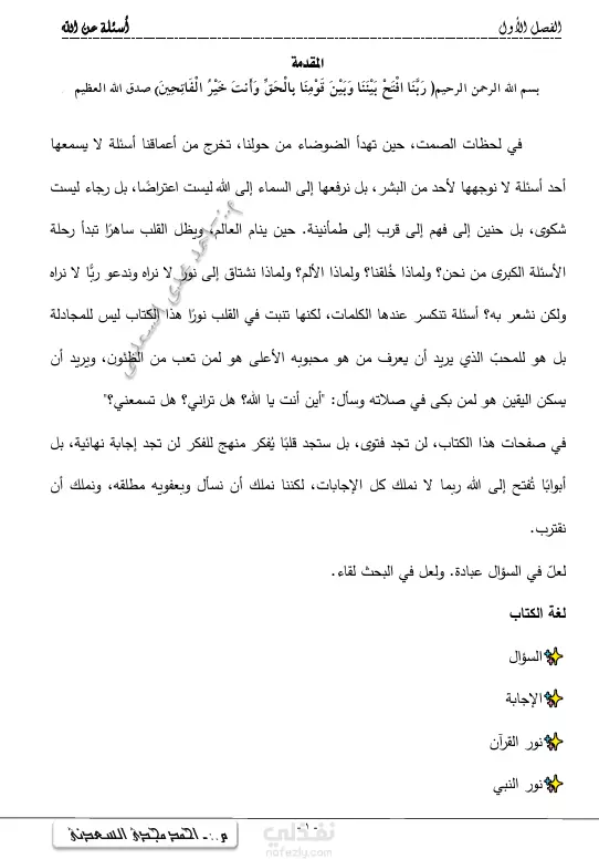 الكتاب معمول بلغة بسيطة وواقعية، بيخاطب العقل والقلب معًا، وبيفتح باب للتفكر بدل ما يدي إجابات جاهزة بس. الهدف منه إنه يساعد القارئ يلاقي طمأنينة وإيمان واعي مش مجرد تقليد.