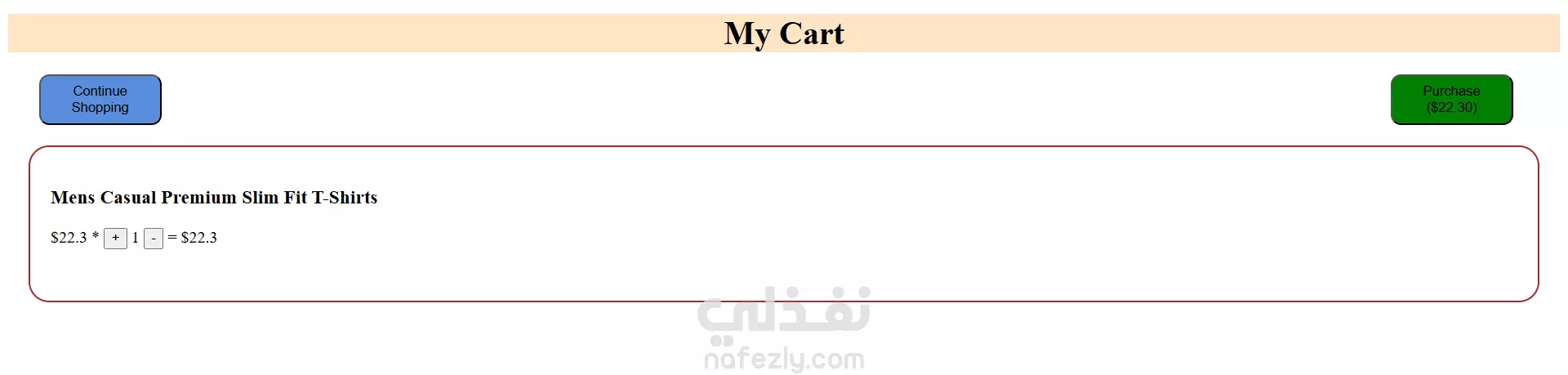 زر Purchase لإتمام الطلب وعرض رسالة تأكيد.