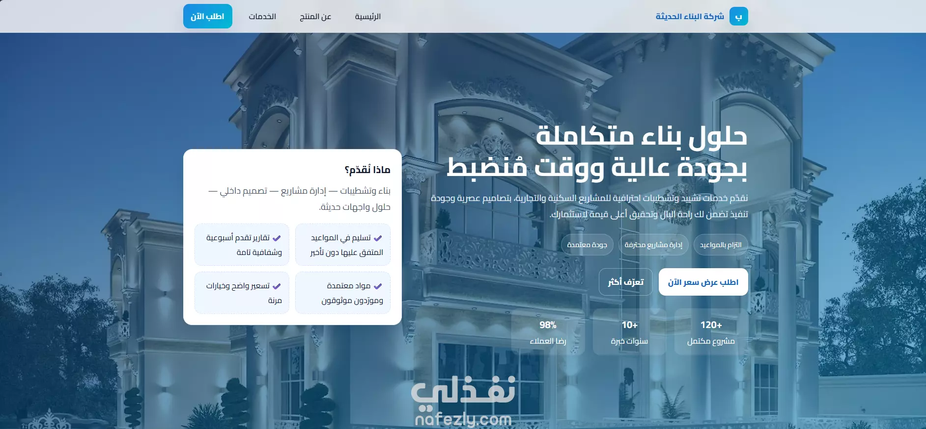 شركة البناء الحديثة هو مشروع لتقديم حلول بناء متكاملة، يضم جميع خدمات التشييد والتشطيبات، إدارة المشاريع، التصاميم الداخلية والخارجية، مع التركيز على الجودة العالية، الالتزام بالمواعيد، ورضا العملاء. يهدف المشروع إلى تبسيط عملية البناء من التخطيط وحتى التسليم مع ضمان الشفافية والاحترافية في كل خطوة.