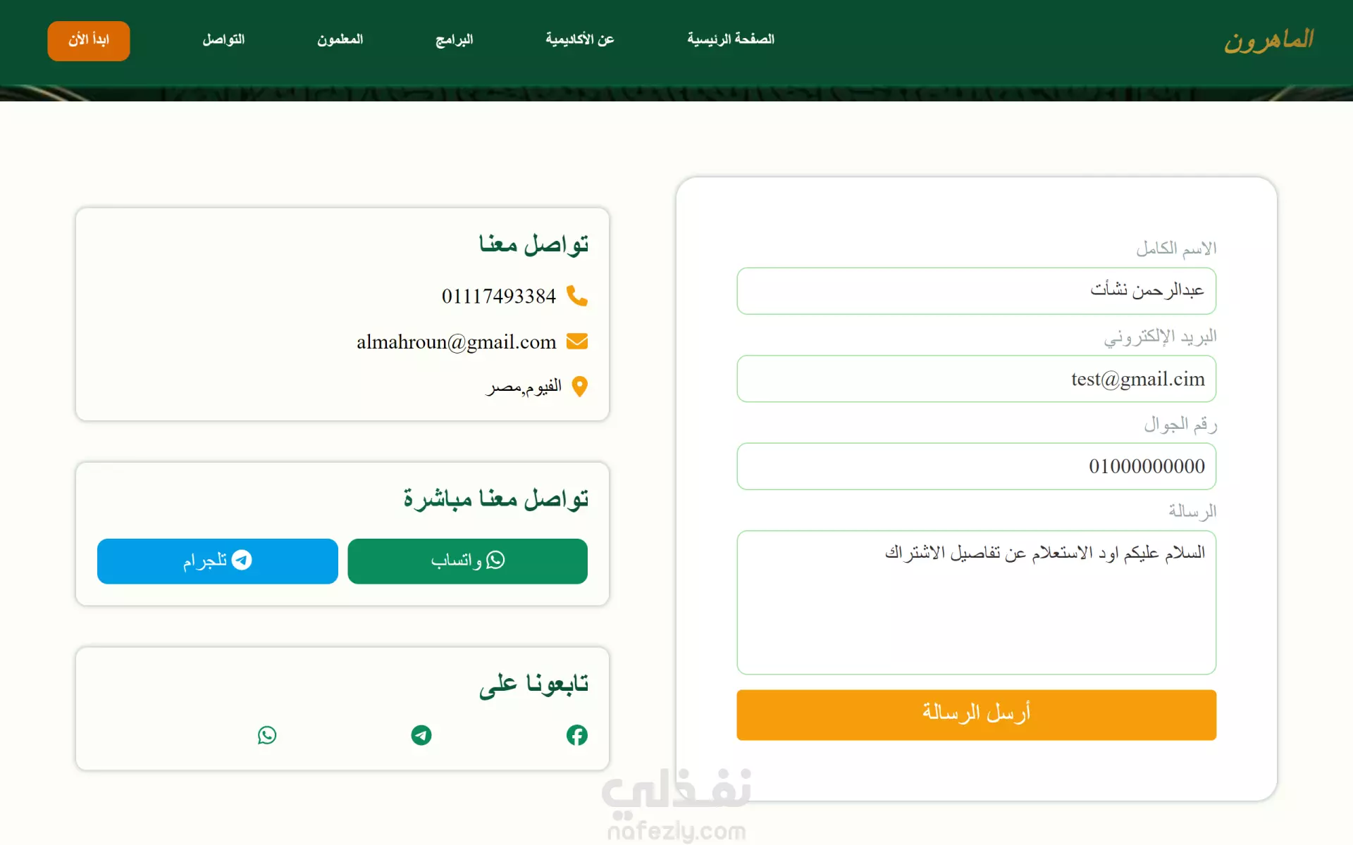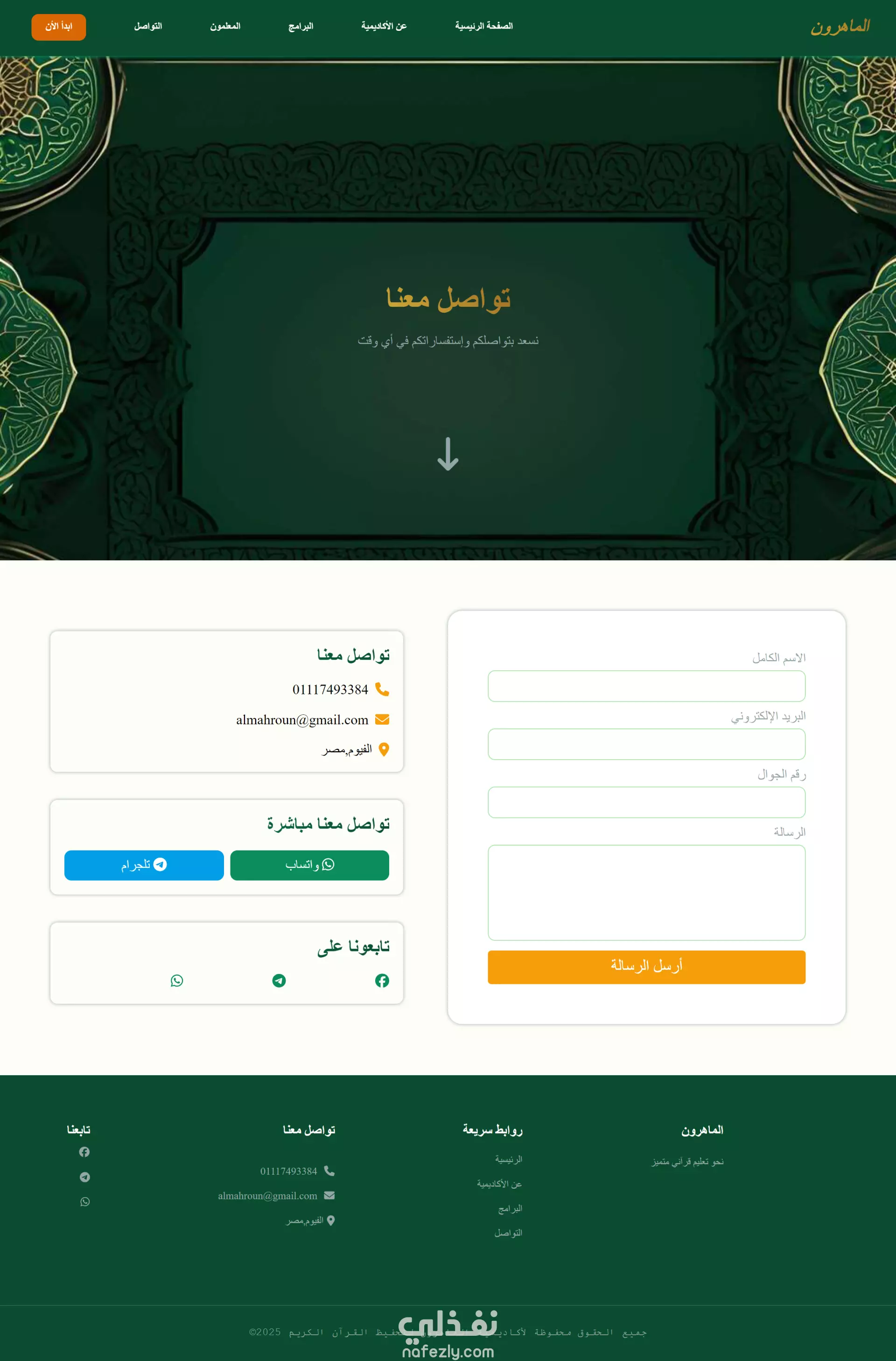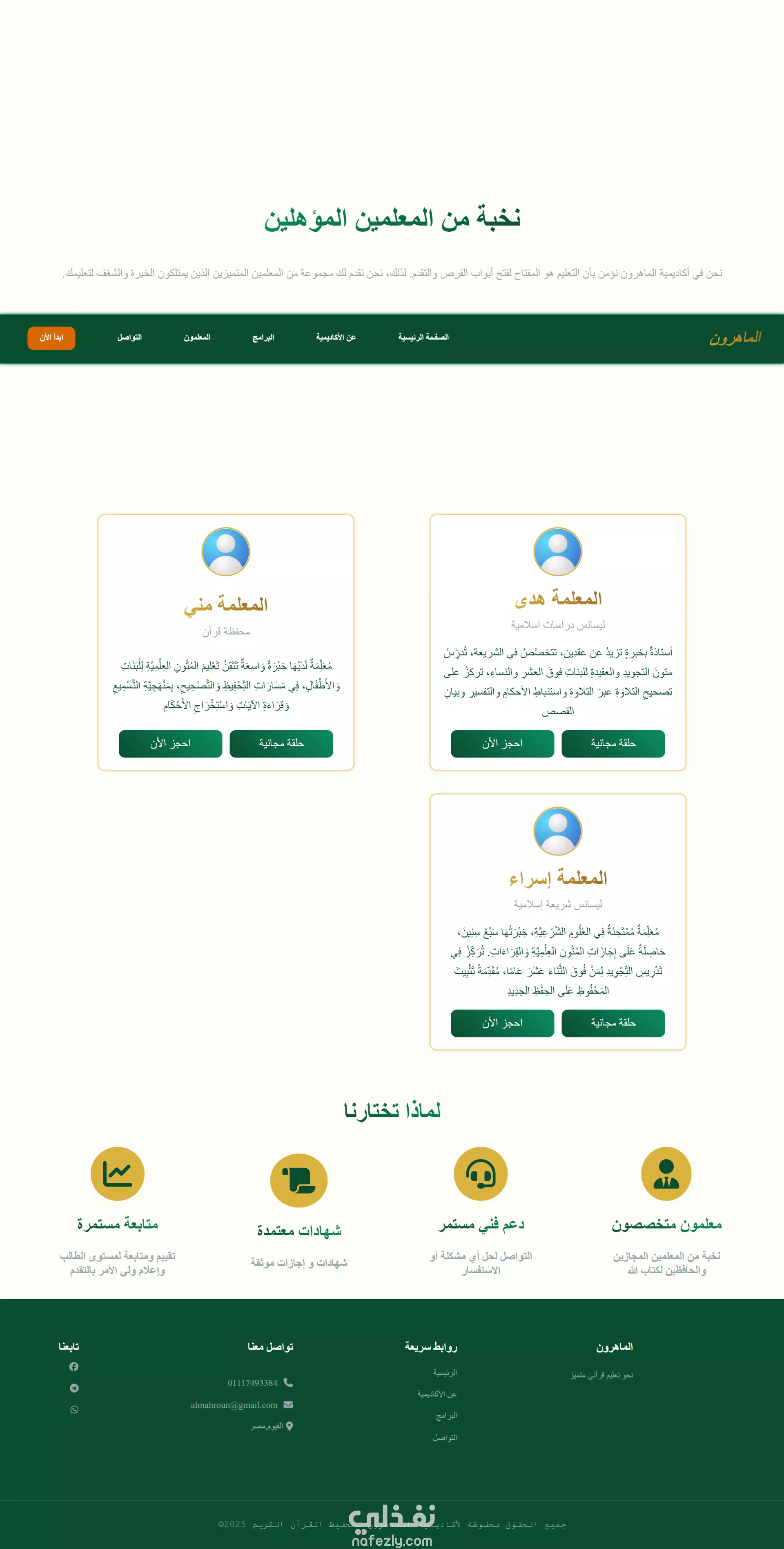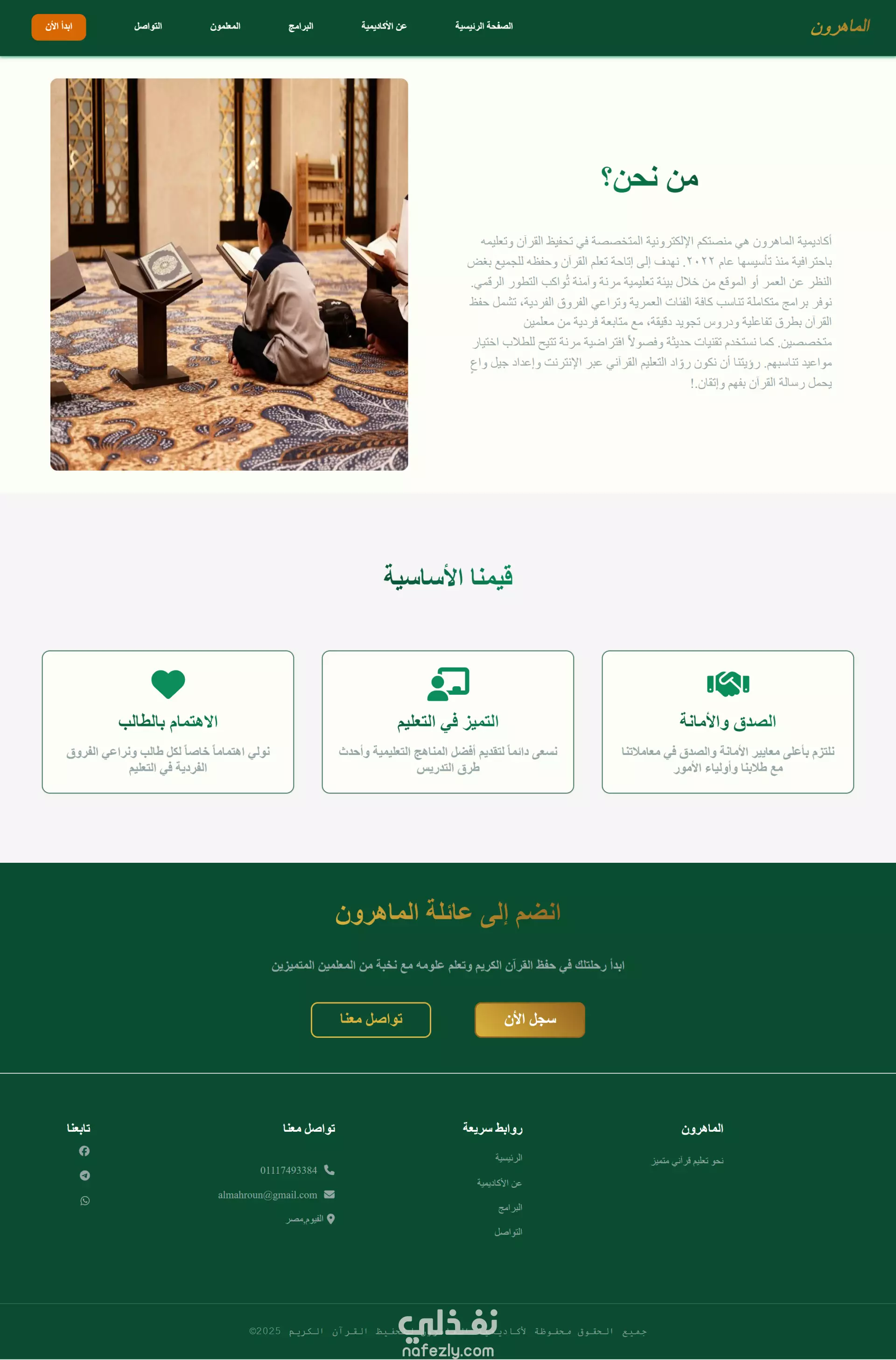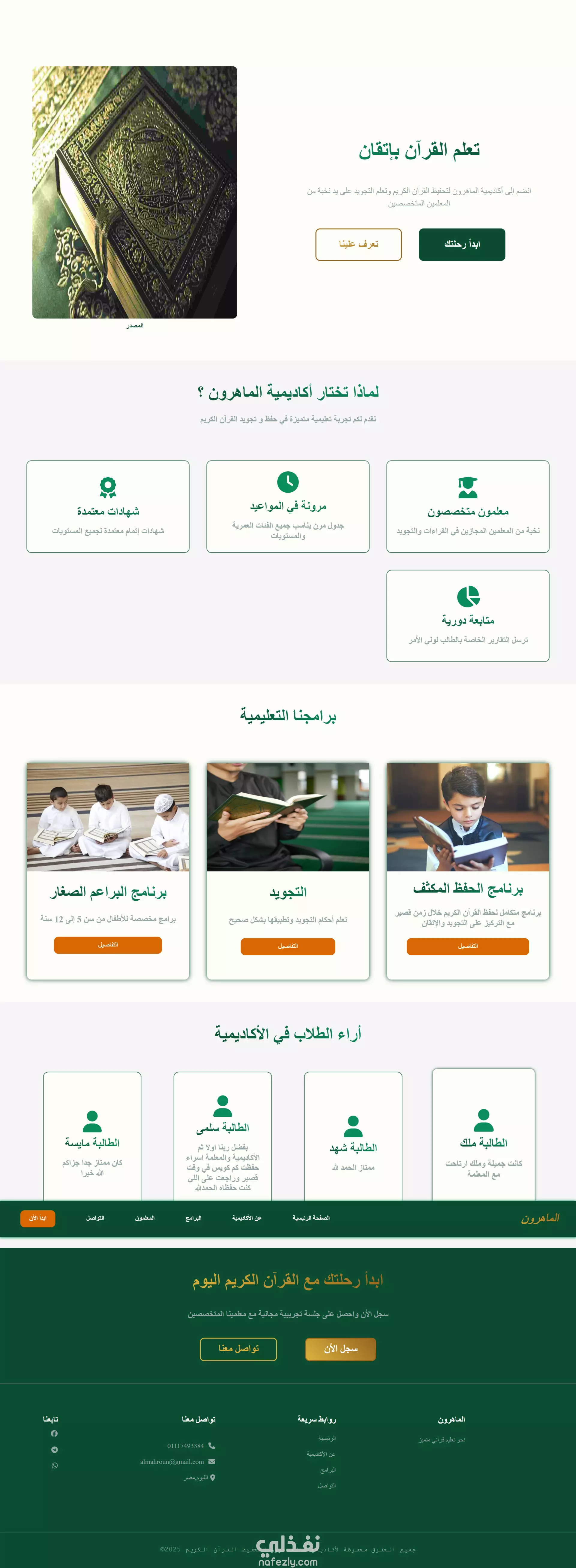 تم تطوير واجهة لموقع "أكاديمية الماهرون" باستخدام React، بتصميم متجاوب وأداء سريع، مع التركيز على تجربة المستخدم. يشمل الموقع صفحة هبوط احترافية ونموذج تواصل ذكي يوجّه المستخدم تلقائيًا إلى واتساب برسالة جاهزة للإرسال بنقرة واحدة. المشروع نُفّذ بما يتوافق مع القيم الشرعية الإسلامية وبأعلى معايير الجودة في تطوير الواجهات.
