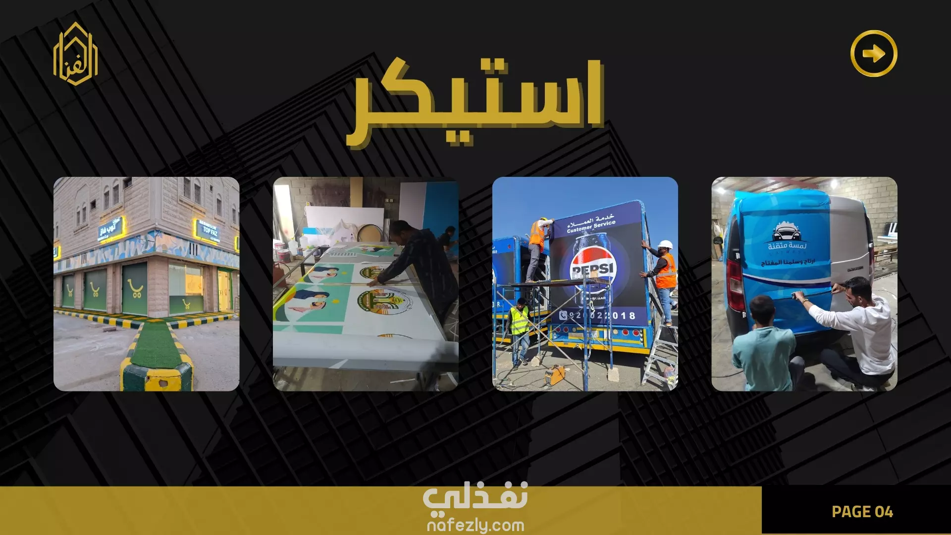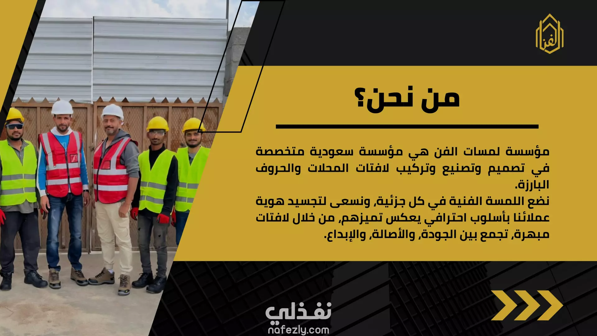 تعريف عن الشركة مؤسسة لمسات الفن هي مؤسسة سعودية متخصصة في تصميم وتصنيع وتركيب لافتات المحلات والحروف البارزة