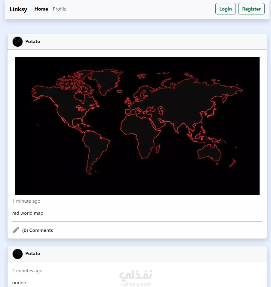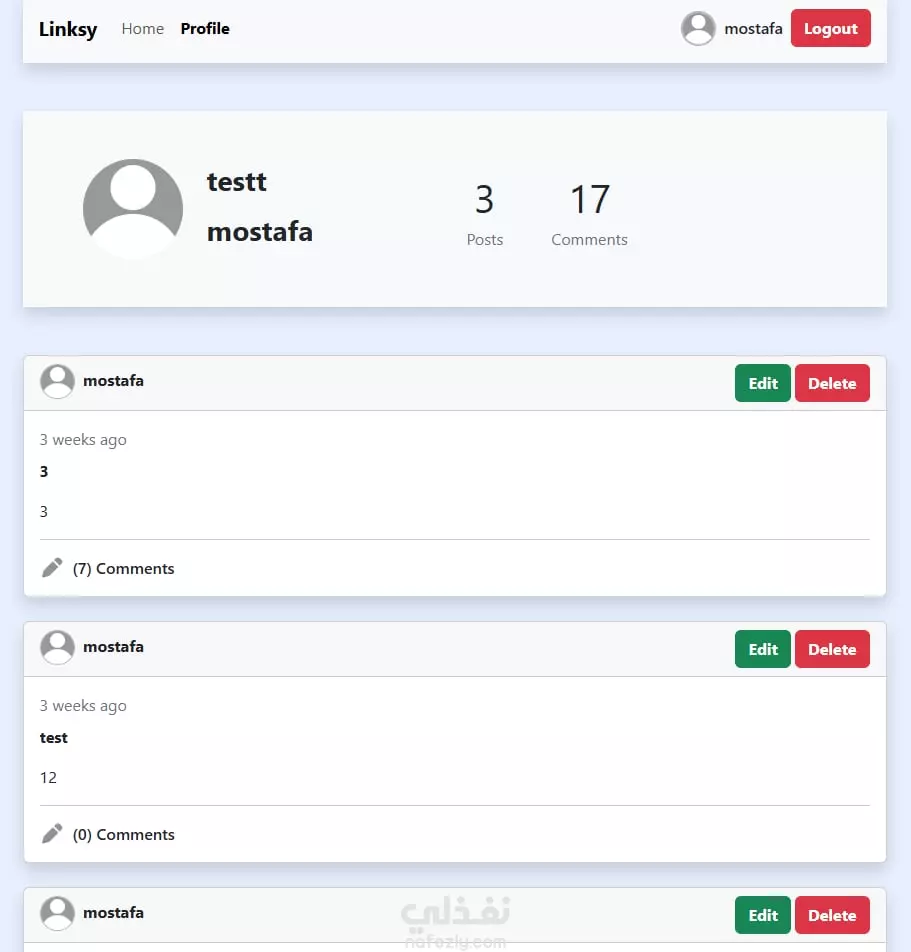Linksy هو موقع لمنصّة تواصل اجتماعي قمت بتطويره باستخدام HTML, CSS, JavaScript, Bootstrap مع ربطه بـ API للتعامل مع البيانات بشكل ديناميكي. المميزات الأساسية: 🏠 صفحة Home: بتعرض المنشورات مع خاصية Infinite Scroll لتحميل المزيد من البوستات تلقائيًا أثناء التمرير. 👤 صفحة Profile: بتعرض معلومات المستخدم وجميع منشوراته. 📝 صفحة Post Details: بتعرض تفاصيل أي منشور يتم الضغط عليه، مع إمكانية إضافة التعليقات عليه. ➕✏️❌ كل مستخدم يقدر يضيف، يعدّل، أو يحذف منشوراته بسهولة. ركزت في المشروع على: تجربة مستخدم سلسة وسريعة. تصميم متجاوب باستخدام Bootstrap. تكامل كامل مع API لإدارة المحتوى بشكل حي.