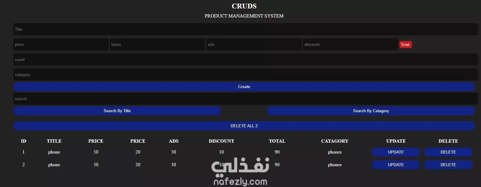 CRUD System هو تطبيق ويب بسيط قمت بتطويره باستخدام HTML, CSS, JavaScript, Bootstrap لتنفيذ عمليات إضافة (Create)، قراءة (Read)، تعديل (Update)، وحذف (Delete) على البيانات. المميزات الأساسية: 📝 إضافة بيانات جديدة. 📋 عرض جميع البيانات في جدول منظم. ✏️ تعديل وحذف السجلات بسهولة. 🔍 خاصية البحث الذكي باستخدام الاسم أو الـ ID لتسهيل الوصول إلى البيانات بسرعة. المشروع يوضح قدرتي على التعامل مع إدارة البيانات وبناء واجهات تفاعلية متجاوبة وسهلة الاستخدام.