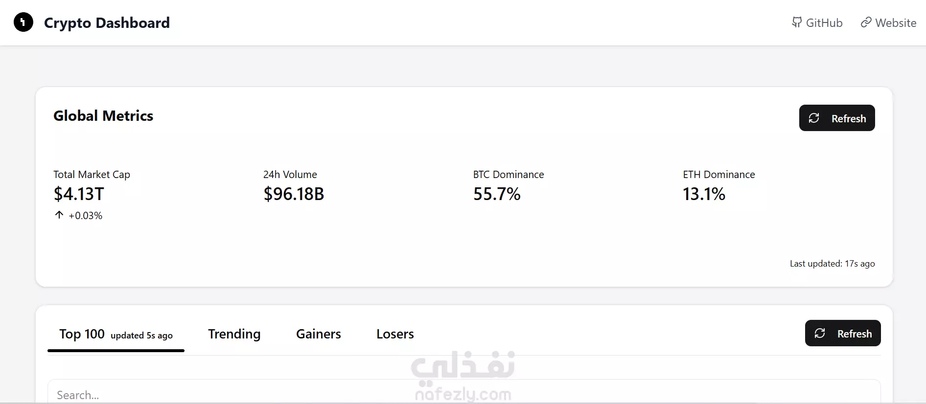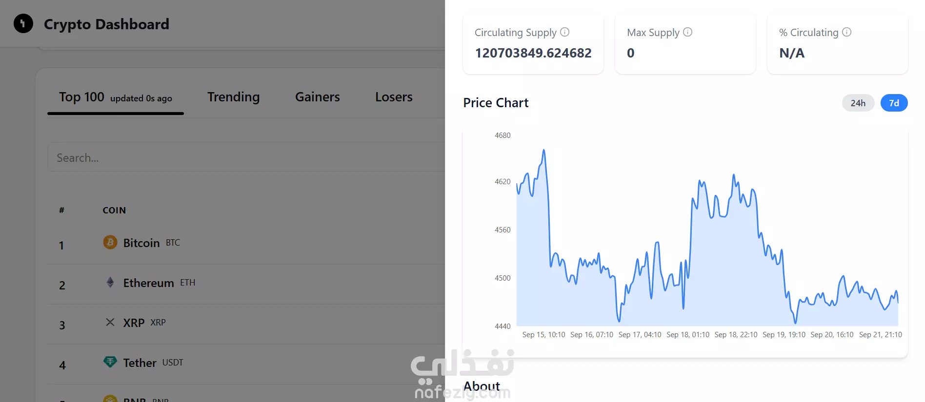 لوحة تحكم للعملات المشفّرة – Crypto Dashboard