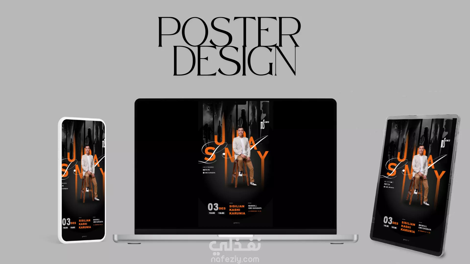 تم تنفيذ هذا البوستر باستخدام Adobe Photoshop بالاعتماد على مرجع بصري. يتميز بخطوط واضحة وتباين قوي مع ترتيب منظم للعناصر. الألوان المستخدمة حيوية ومتوازنة لتعطي طاقة للتصميم، مع تكوين نظيف يضمن وضوح الرسالة وجاذبيتها.
